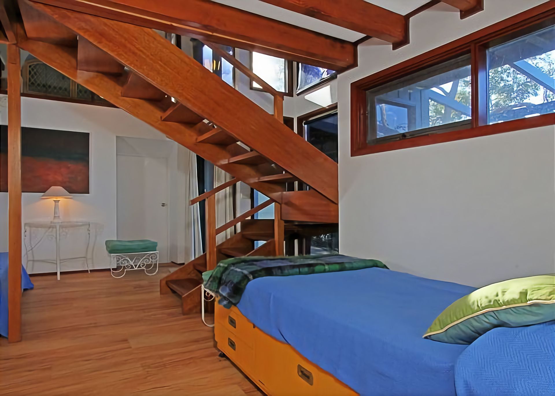 Bedroom Two: Upstairs, has a double bed and also has access to the private courtyard