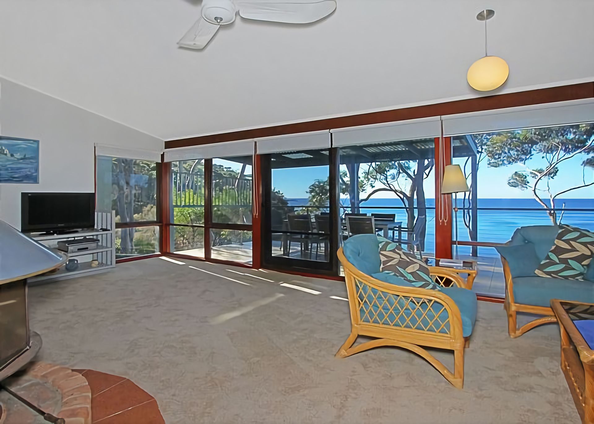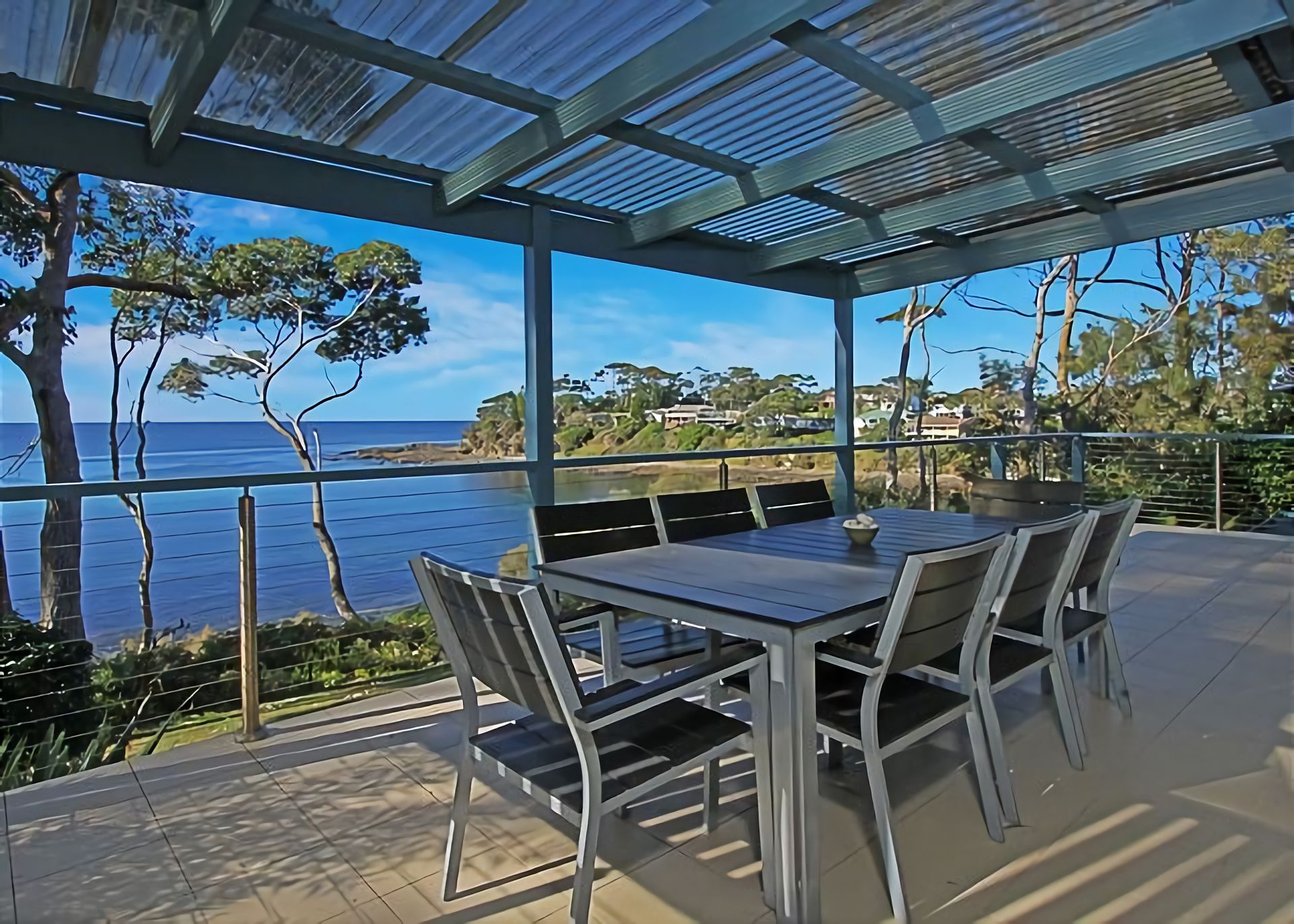 Outside: The large back yard backs onto a cliff. There is a fence and the rocks below are not accessible from the property. As mentioned previously, there is a huge entertaining deck with a generous outdoor setting where you can sit and enjoy the views, There is plenty of parking in the driveway and carport or on the quiet street out the front. The driveway has enough room to park the boat in. The garage is not for guest use for parking. The BBQ is located on the back deck for easy enjoyment.