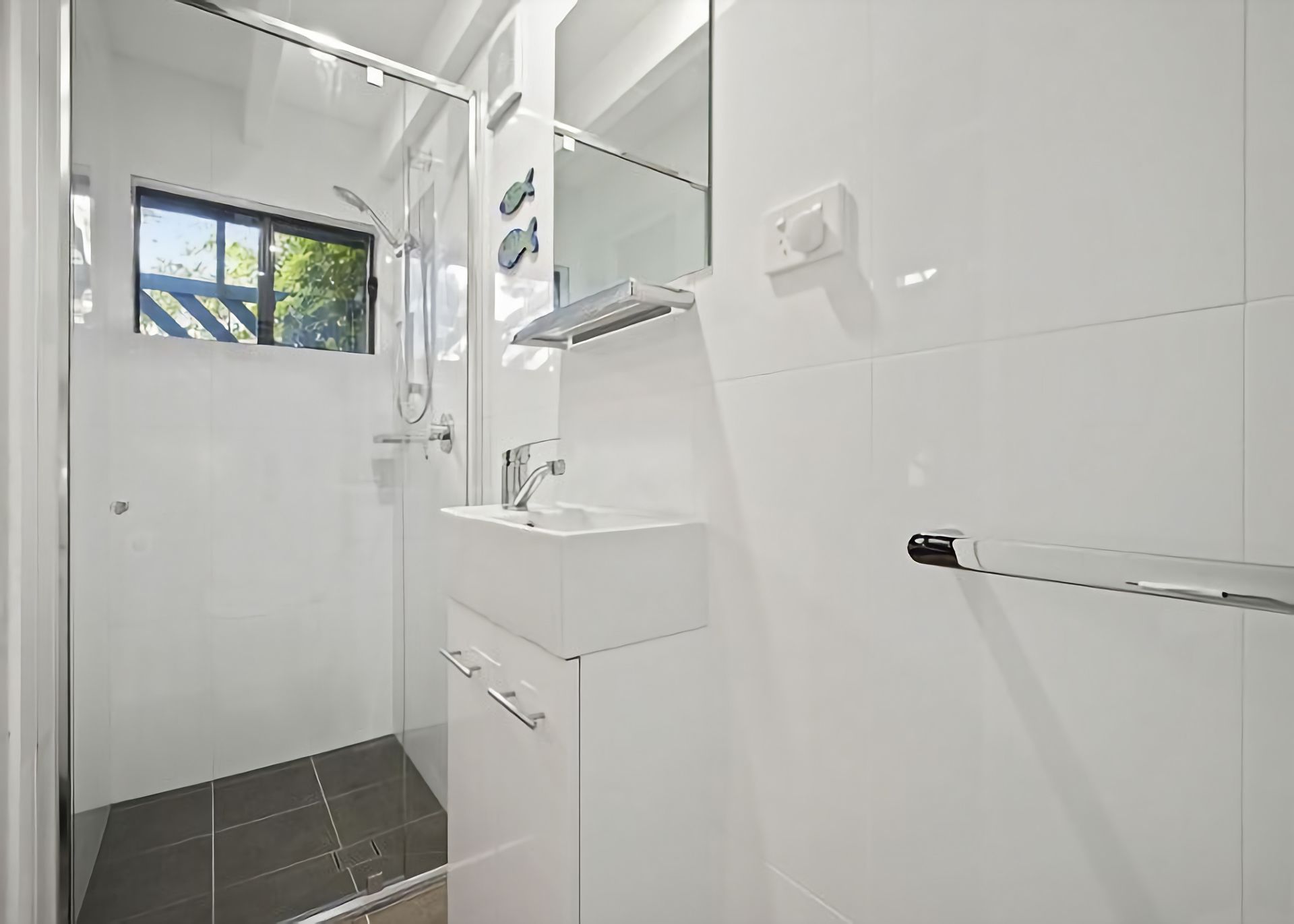 Bathrooms/Laundry Downstairs there is a shared newly renovated bathroom with a shower and toilet and laundry complete with, a top loading washing machine and dryer, (which is kept in the garage). Upstairs bathroom with a shower and toilet.
