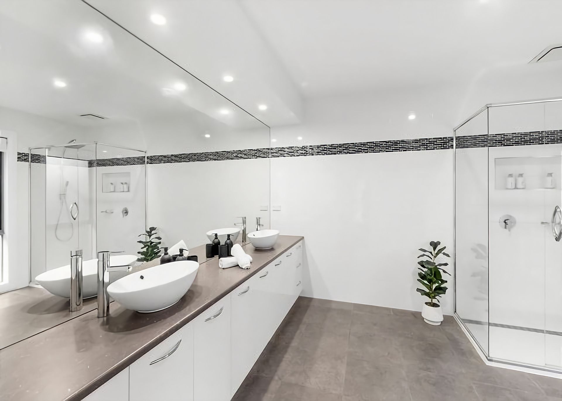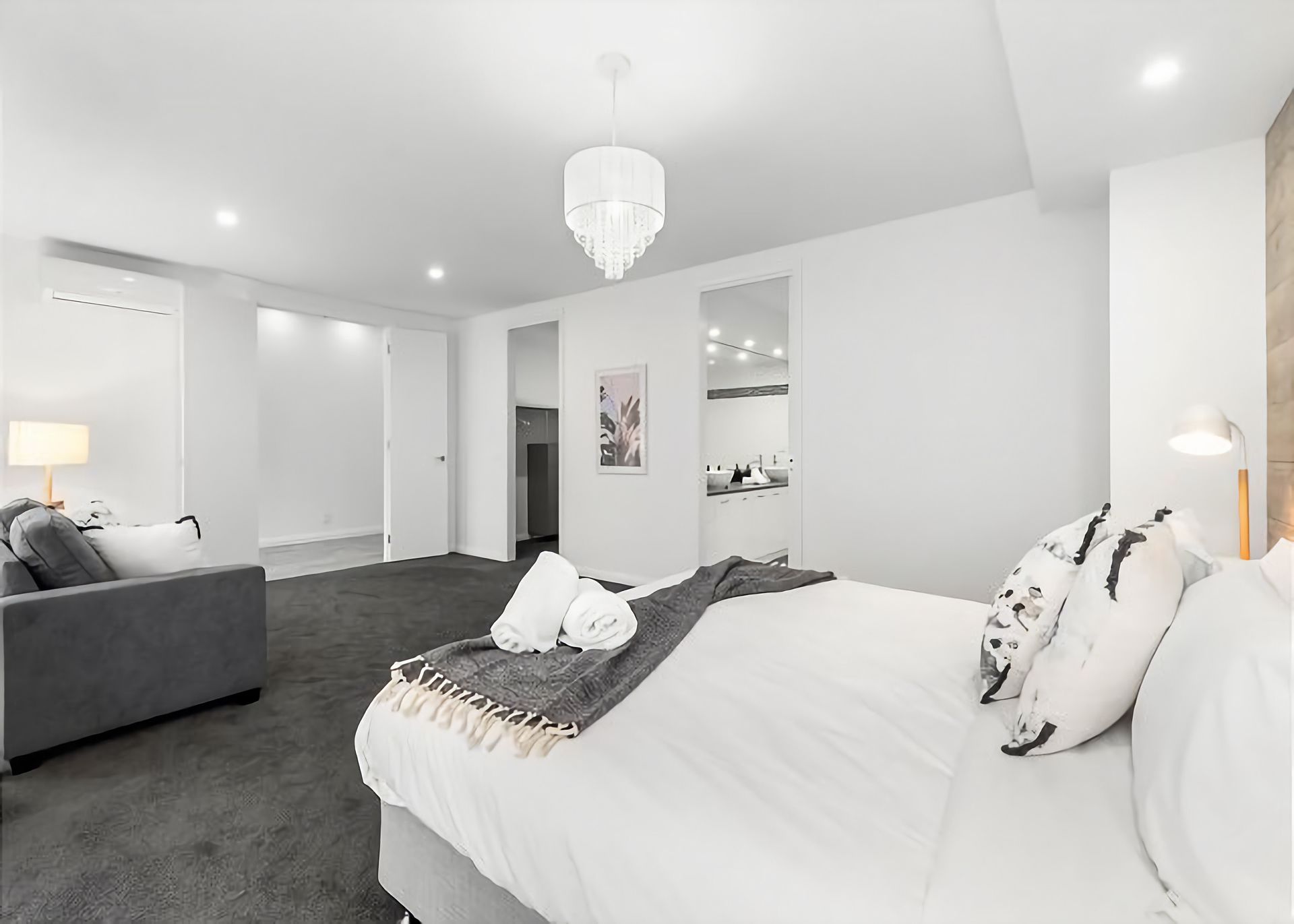 The main bedroom is away from the rest and is enormous with a stunning ensuite and walk in robe. This room has a king bed as well as a queen sized sofa bed. The other 3 bedrooms are off the living area and have 2 queen rooms and a 2 king single beds in the the fourth bedroom. There is a sofa bed in the lounge room for extra guests. There is a family bathroom and a laundry with washing machine. Linen is included, but please let us know if you will need the sofa bed and we will leave the linen.