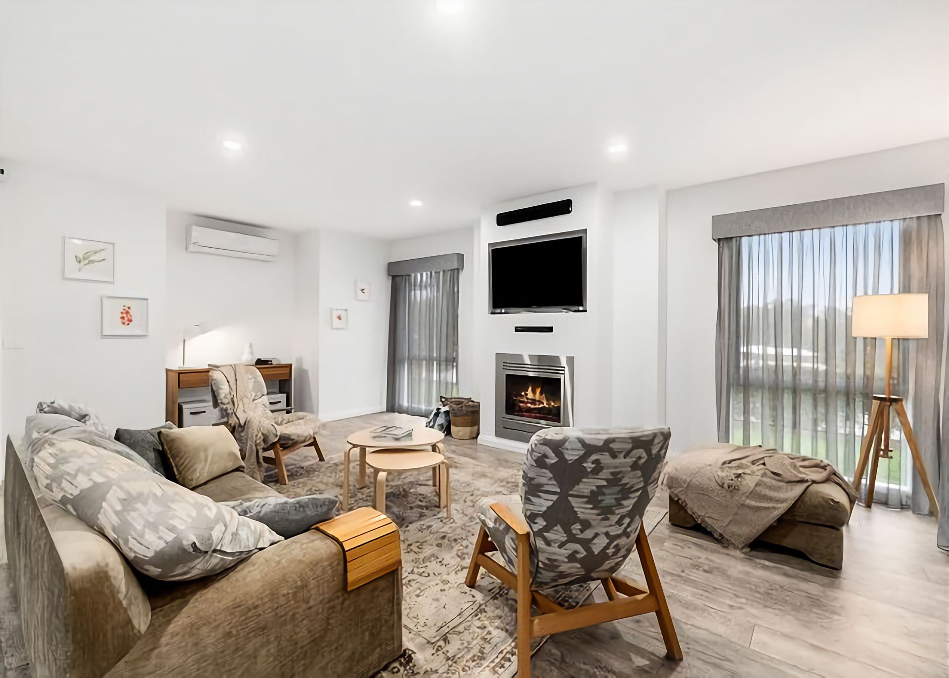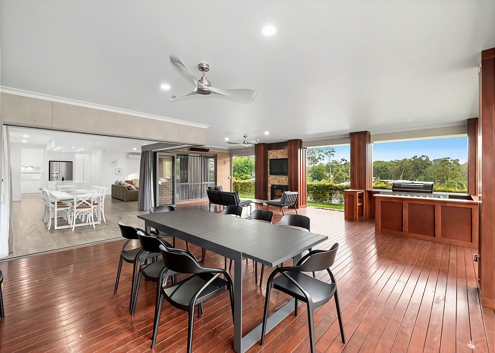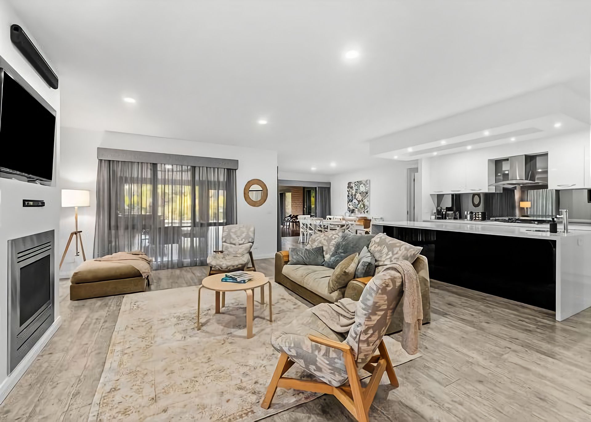There is a massive kitchen/living/dining area - all modern and with high quality appliances. Open up the stacker doors and the divide between indoor and outdoor melts away. There is an outdoor kitchen, a full outdoor fireplace and dining setting, all completely undercover and overlooking the swimming pool. The living area has a gas log fire for those cosy winter nights and a split system AC if you are hot.