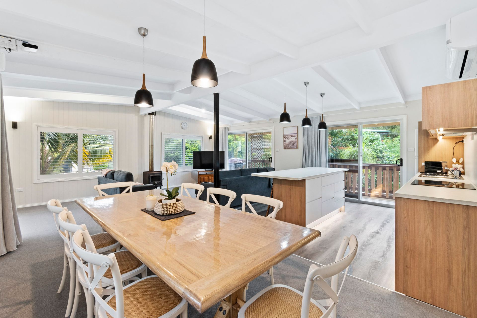 Welcome to Boomerang at South Durras, a beautifully renovated getaway that combines modern comfort with natural beauty. Perfect for families or groups, this spacious property boasts an open-plan living, kitchen, and dining area that flows seamlessly onto a deck with tranquil leafy surrounds. Gather around the cozy slow-combustion fireplace in winter or stay cool with reverse-cycle air conditioning in summer. With high-speed WiFi, a grassy backyard, and ample parking (including space for your boat), you’ll have everything you need for a relaxing stay.
