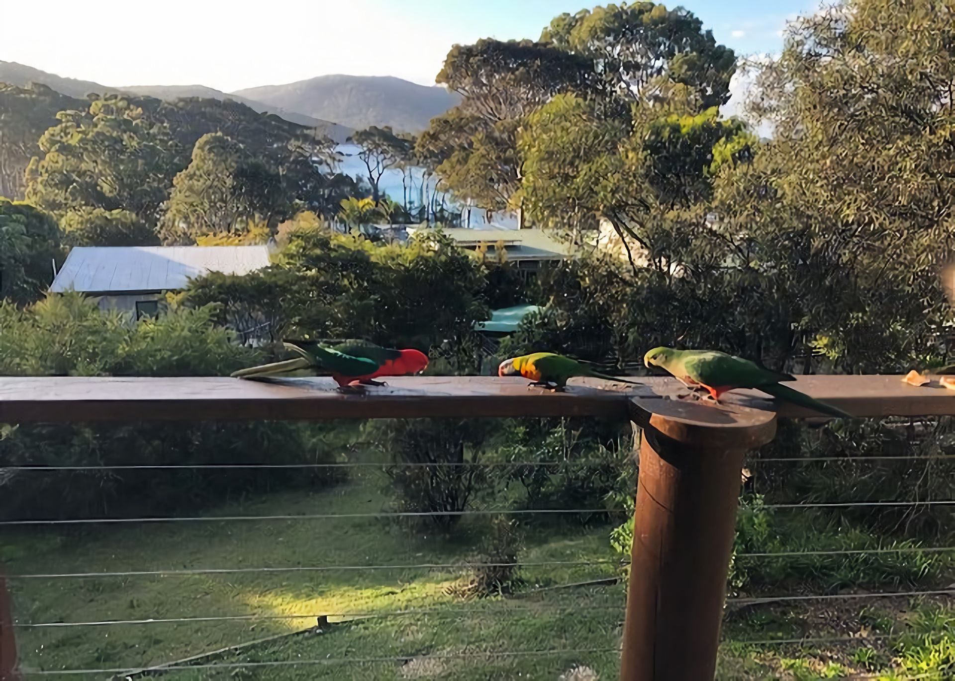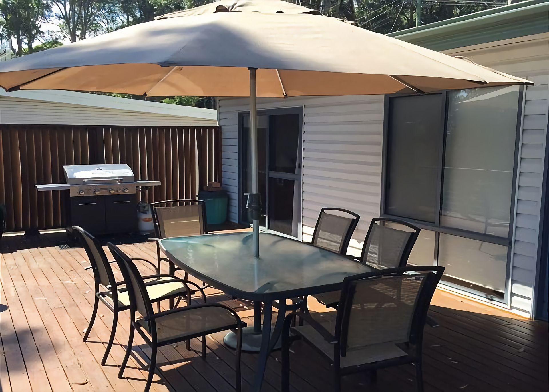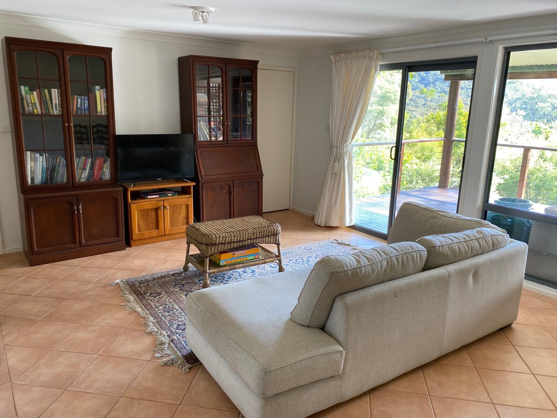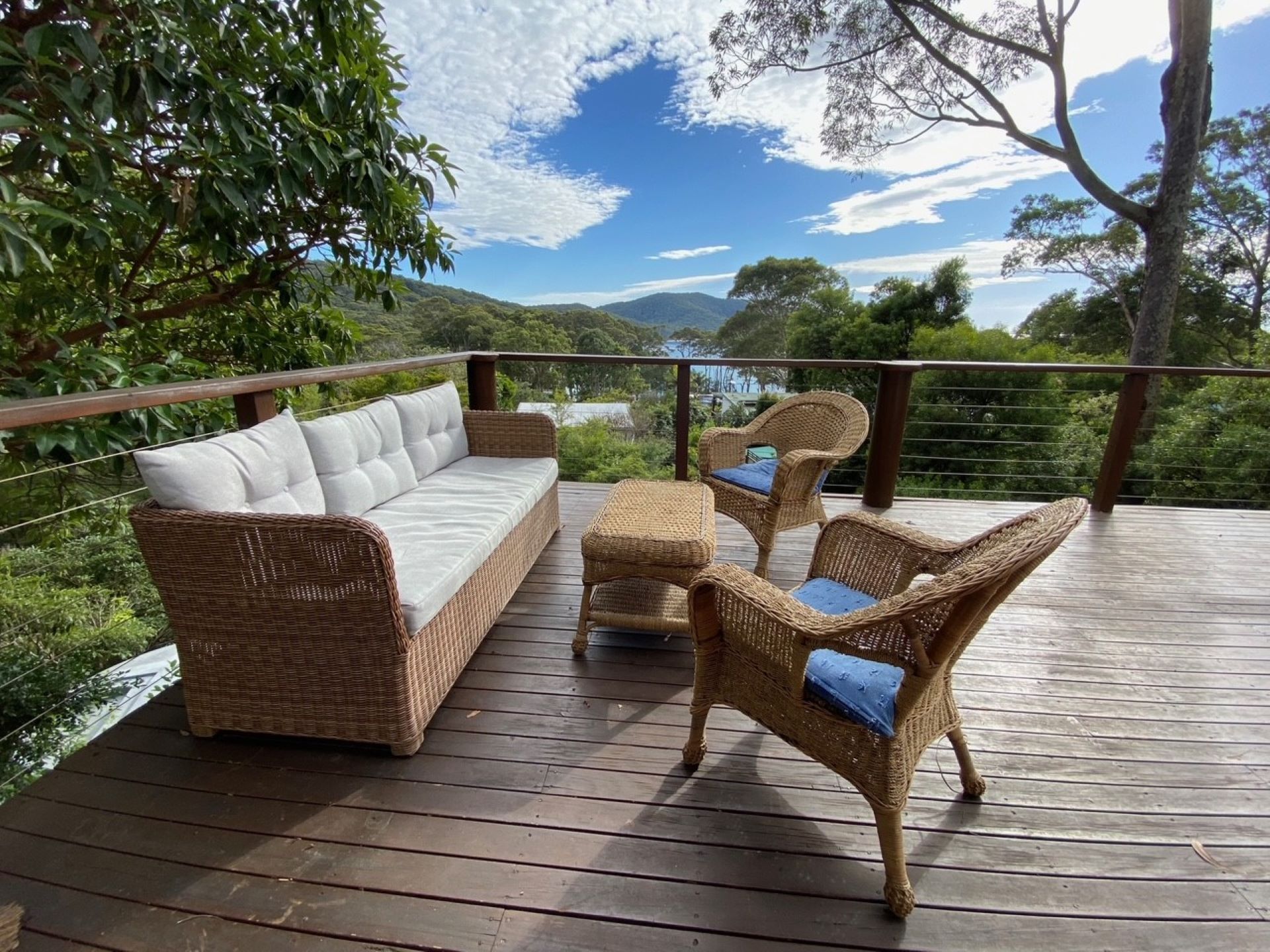 Outside: There is a large back yard with a huge deck and a great BBQ area, from the balcony at the back of the home you can look out towards the mountains and bushland and enjoy reading a book or two.