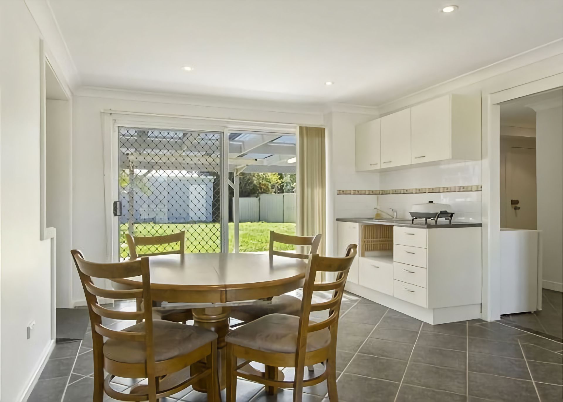 Outside: The back yard is huge! There is a pool, and plenty of room to run around. Both the yard and the pool are fully fenced. As mentioned previously, there is a huge entertaining deck with a generous outdoor setting and barbecue. There is plenty of parking in the driveway and a double lock up garage.