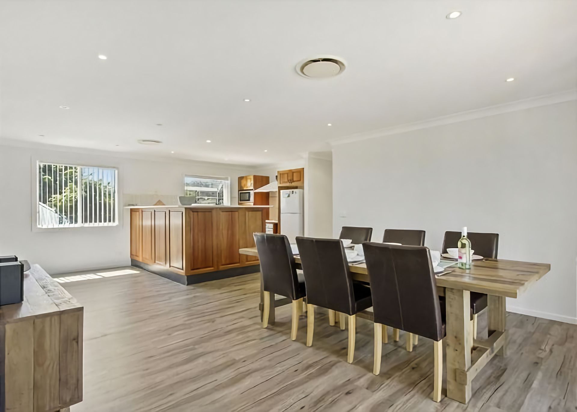 18 Hibiscus Close is proudly managed by Batemans Bay Accommodation. One of the most sought after locations at Maloneys Beach. Sitting on the top back deck overlooking the huge yard with a beautiful pool there is hours of fun and exploration for the kids. Directly opposite the beach, some days it's just easier to fire up the barbecue and settle in around the pool for the afternoon. This property has a massive amount of outdoor entertaining space with a very large deck upstairs and undercover area downstairs. Out the front there's a smaller deck coming off the living room that is flooded with morning light and has good water views of the Bay. This property is ideal for a couple of families with two living areas and plenty of room. It is in a very quiet street, so you'll only be disturbed by the gentle lapping of the waves. The whole area is flat, so perfect to bring the kids bikes for riding around. Just at the back of the suburb it backs onto Murramarang National park so lots of walking and mountain bike tracks close by.