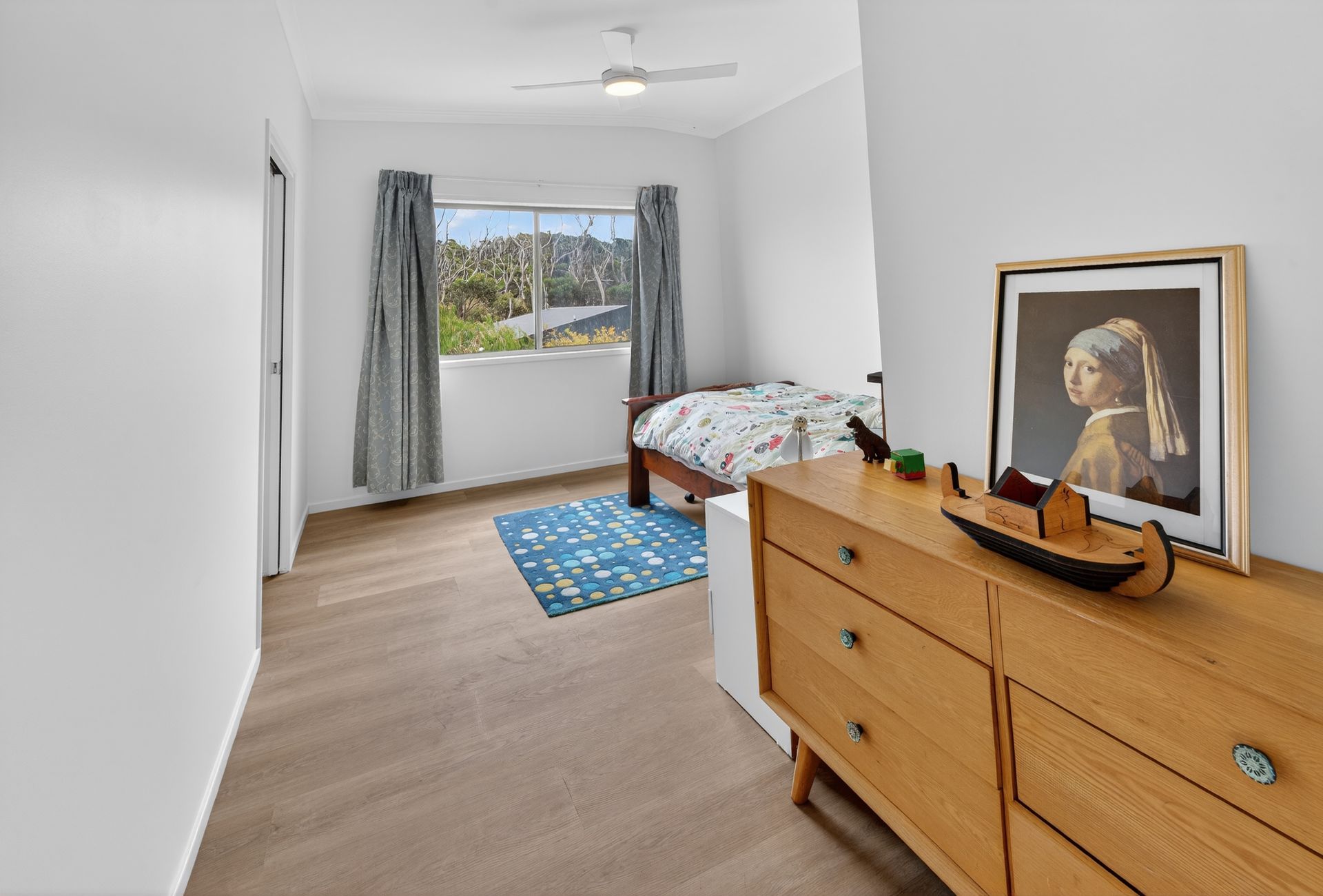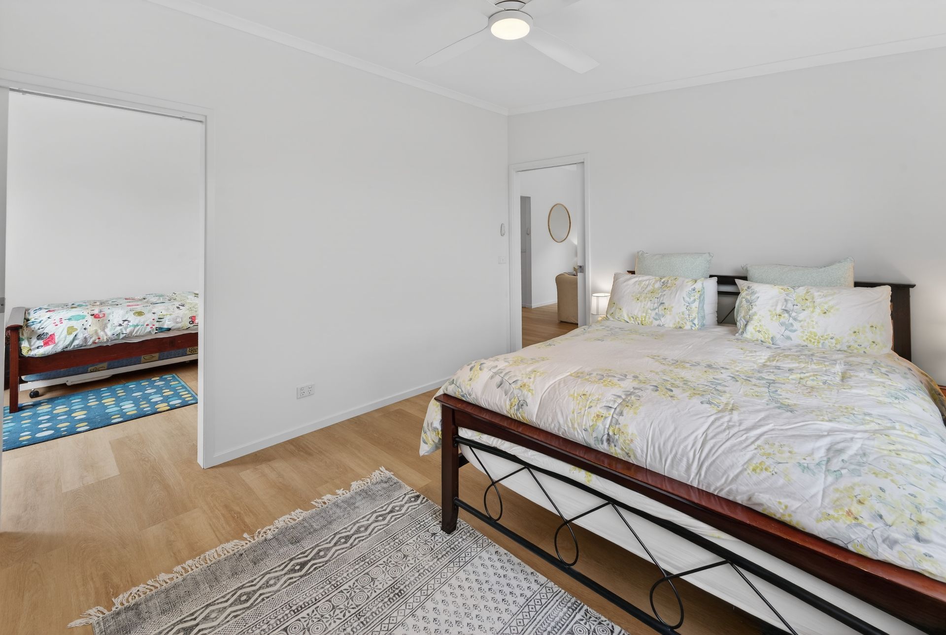 • Single bedroom ideal for a quiet retreat or child’s room and an overhead fan