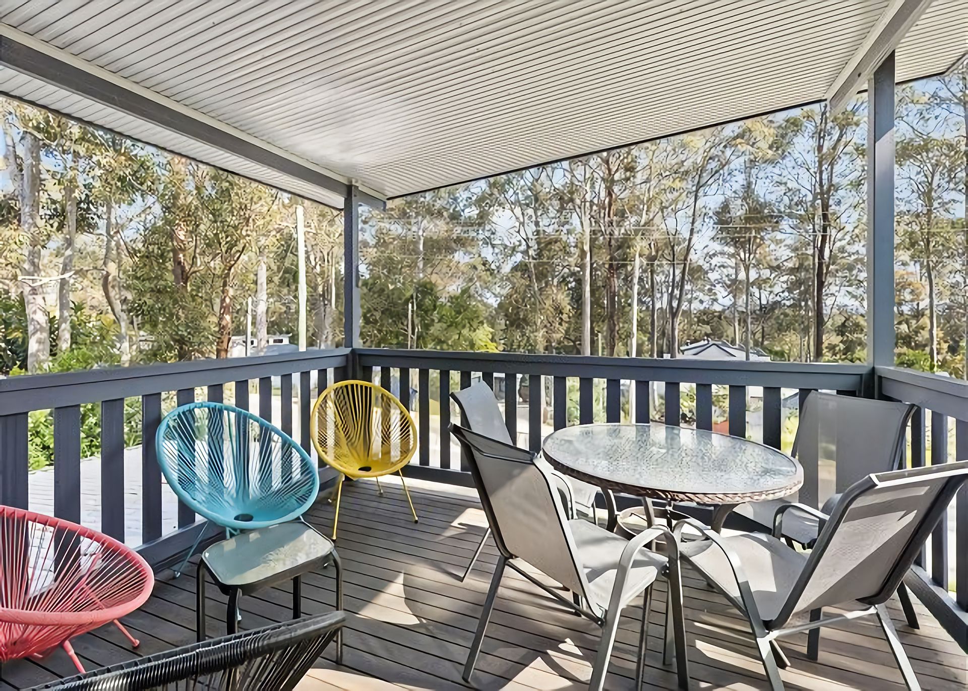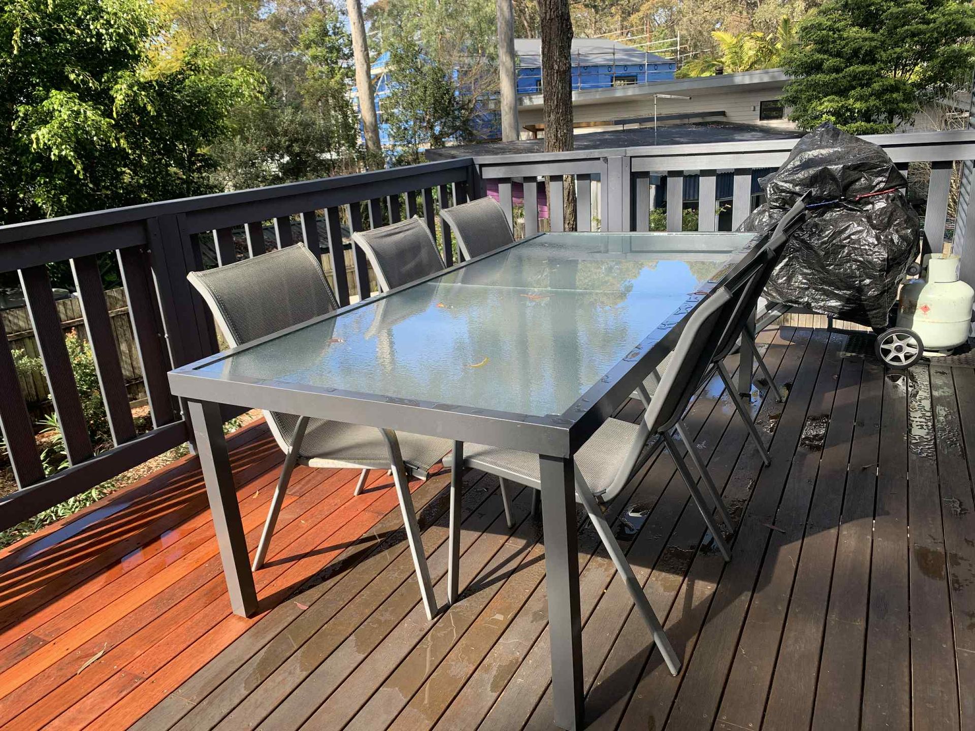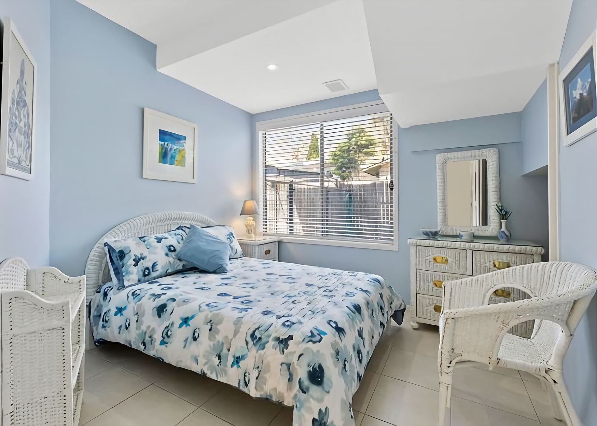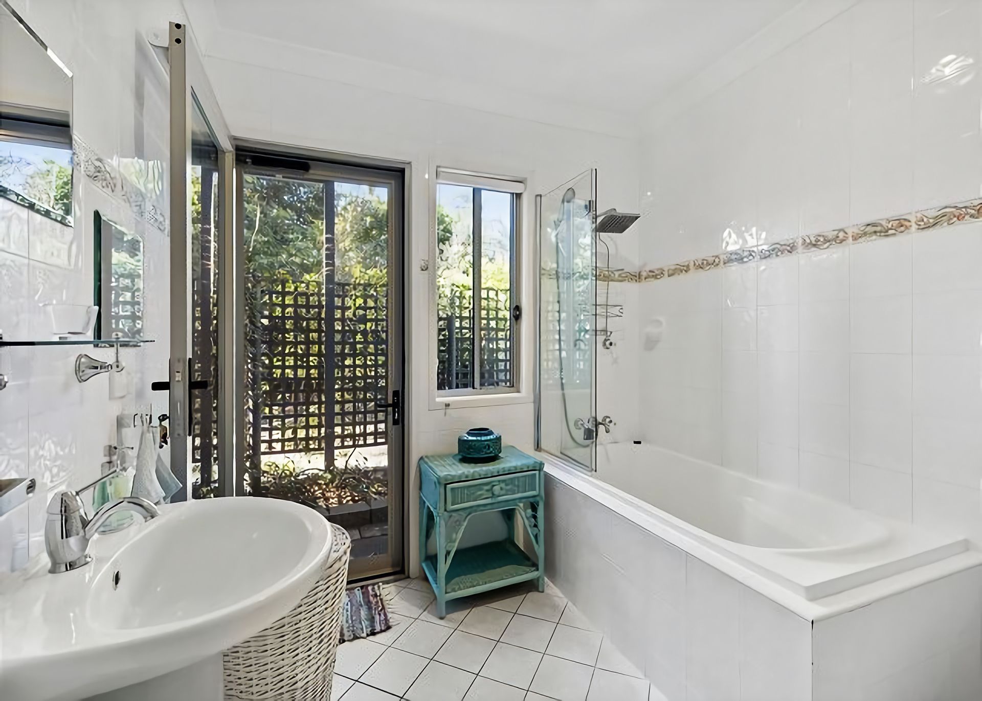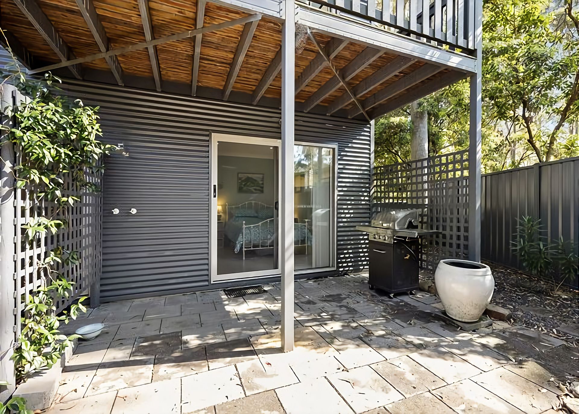 Access to the fully fenced back yard is from here. There is a BBQ and an outdoor shower with hot and cold water to rinse off after the beach. Off to the side of the house is a full European Laundry with washer and dryer.