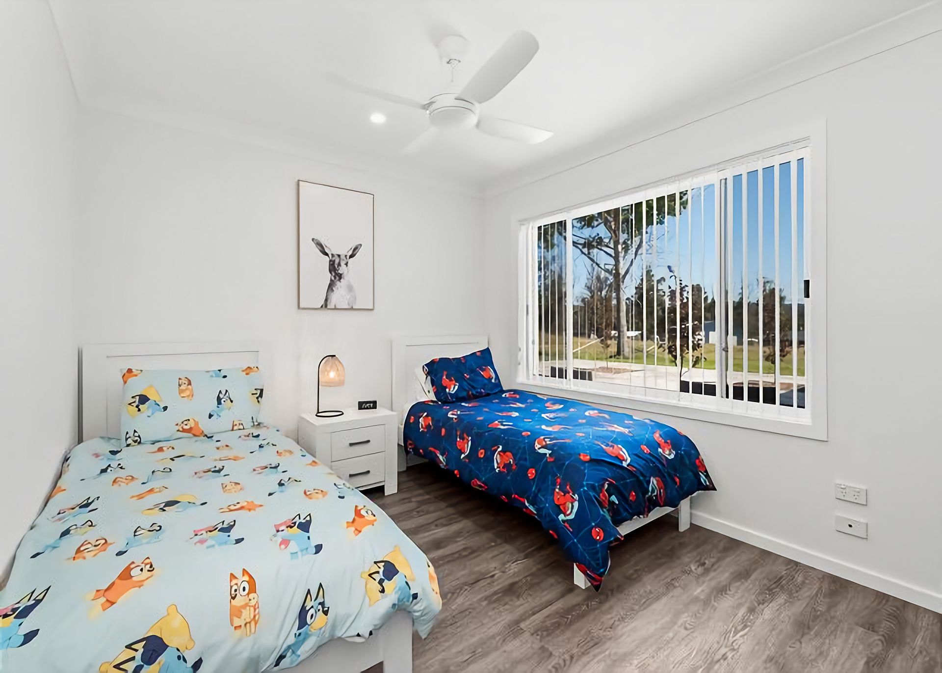 Bedroom 3 is the kids room with two single beds and toys