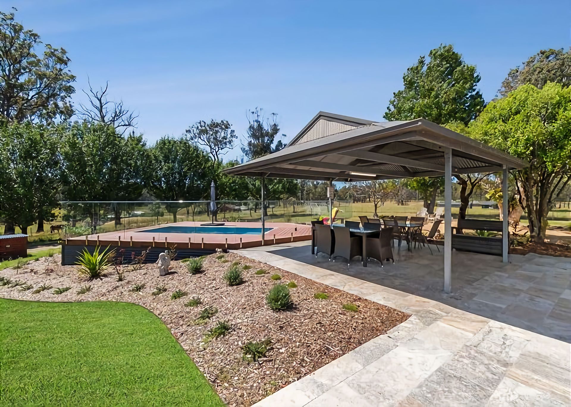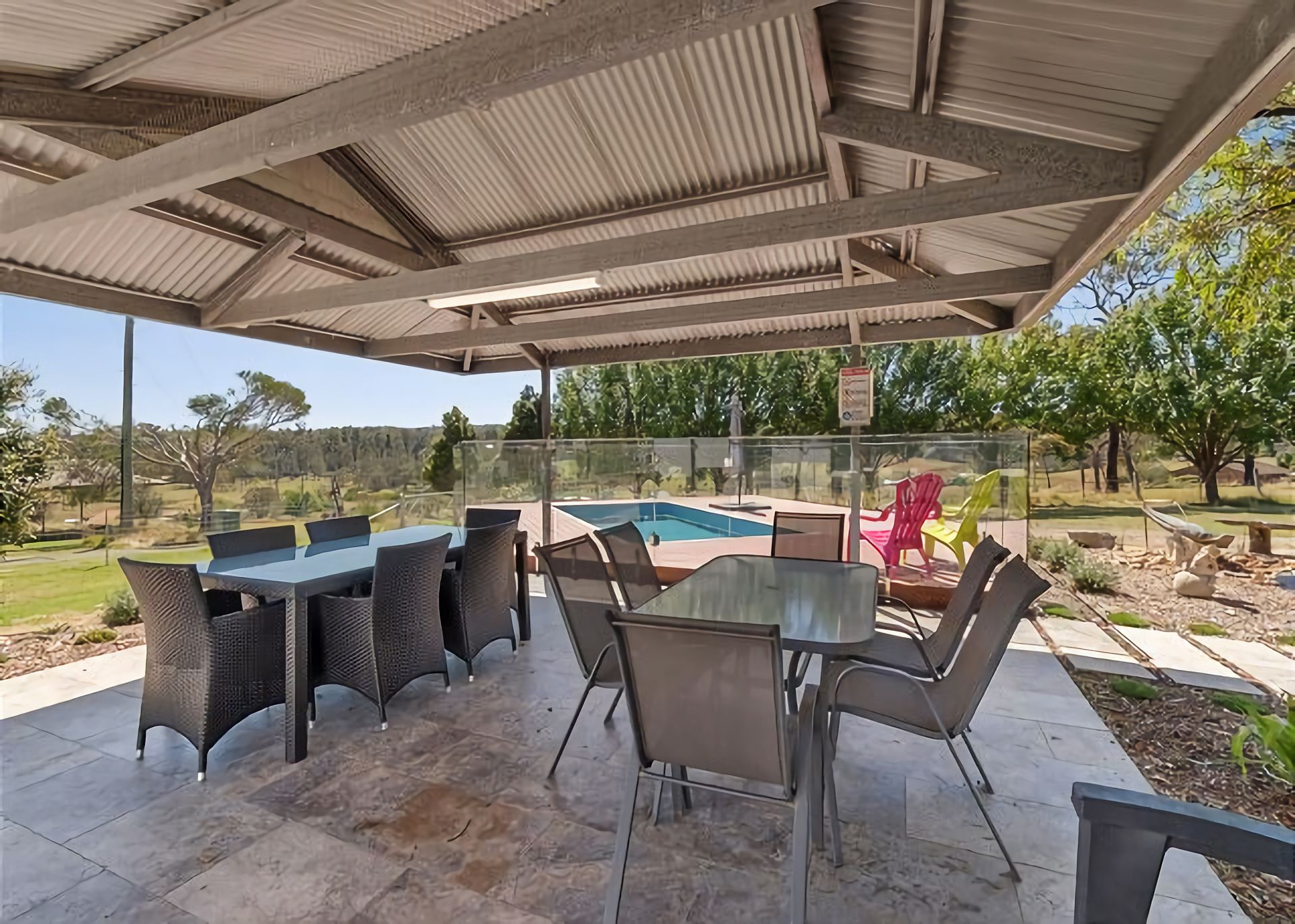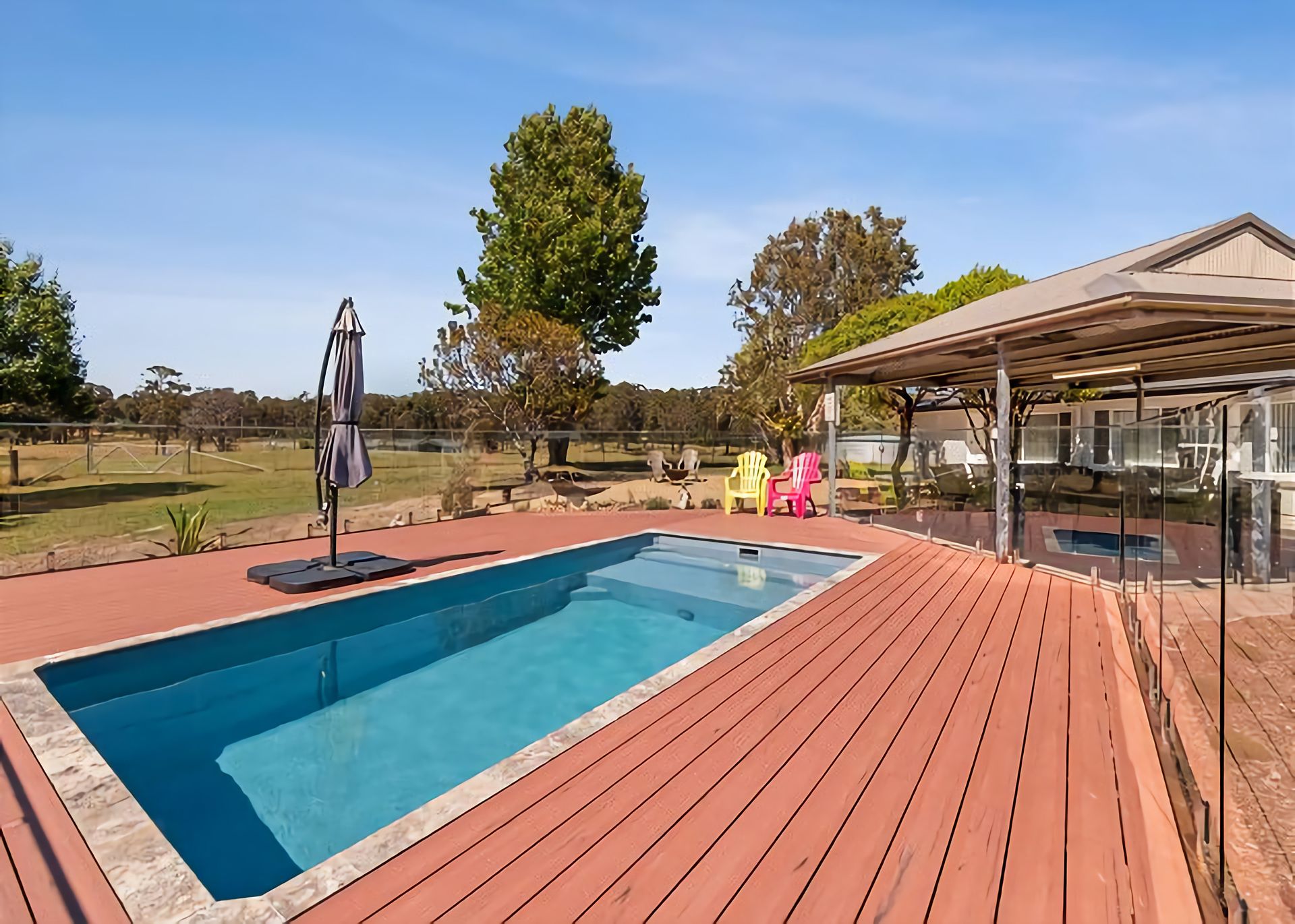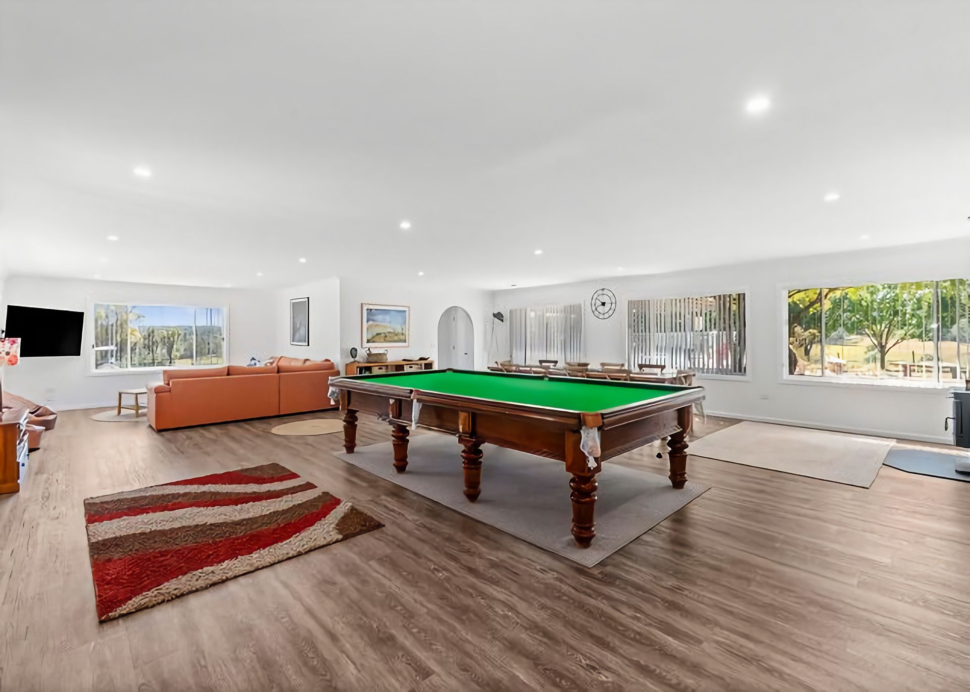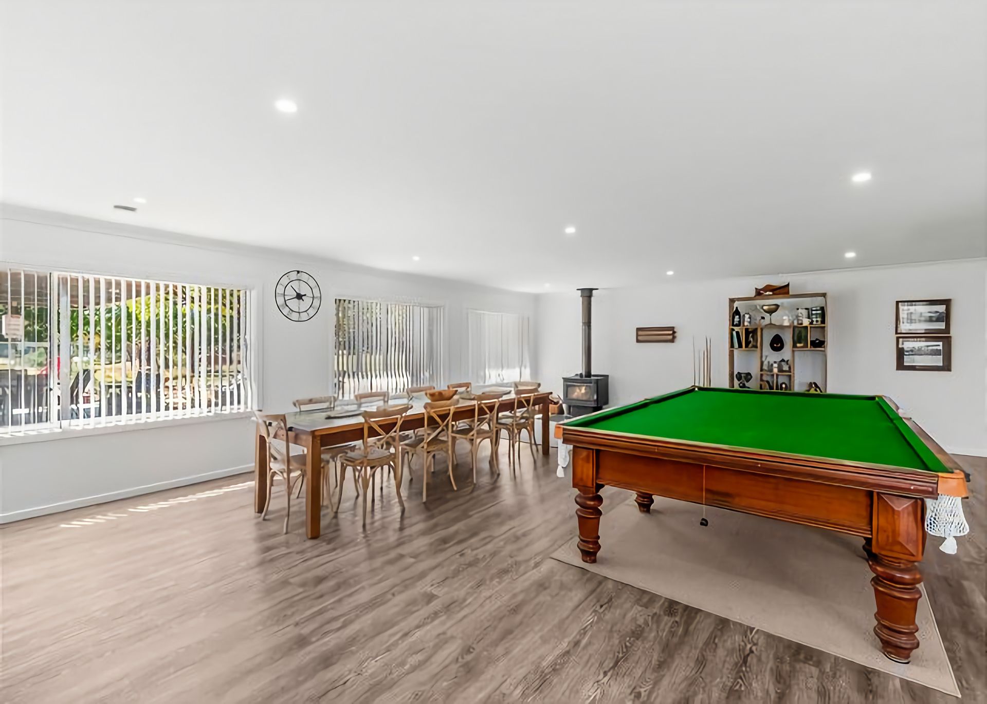 Welcome to Marie's Rest! This luxurious family holiday home is the perfect place to make lasting memories. This property is set on a few acres and it's only a 3 minutes' drive away from multiple beaches, making it the perfect spot for a summer getaway. The Space When you step into the open plan living/dining area, you will love the full size snooker table. You'll also find big comfy lounges, a large dining table, and a modern kitchen. There's also a fireplace and air conditioning for your comfort. Just outside of the living room is an in-ground pool with an alfresco dining area and gas BBQ.