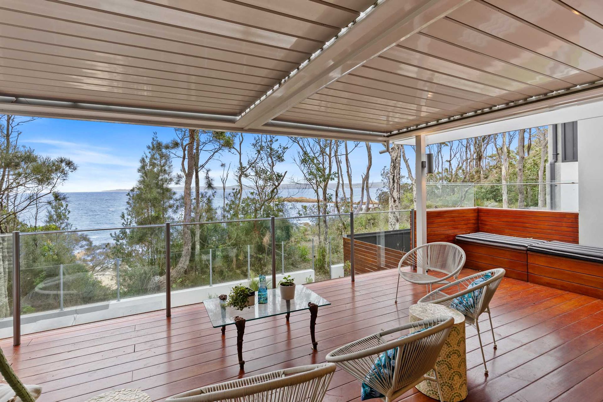 Panorama is a breath taking architect designed coastal retreat perched high above the sparkling waters of Maloney's Beach. With uninterrupted ocean views from nearly every room and private access straight onto the sand, this is an exceptional stay for those who appreciate design, luxury, and nature at its most dramatic.