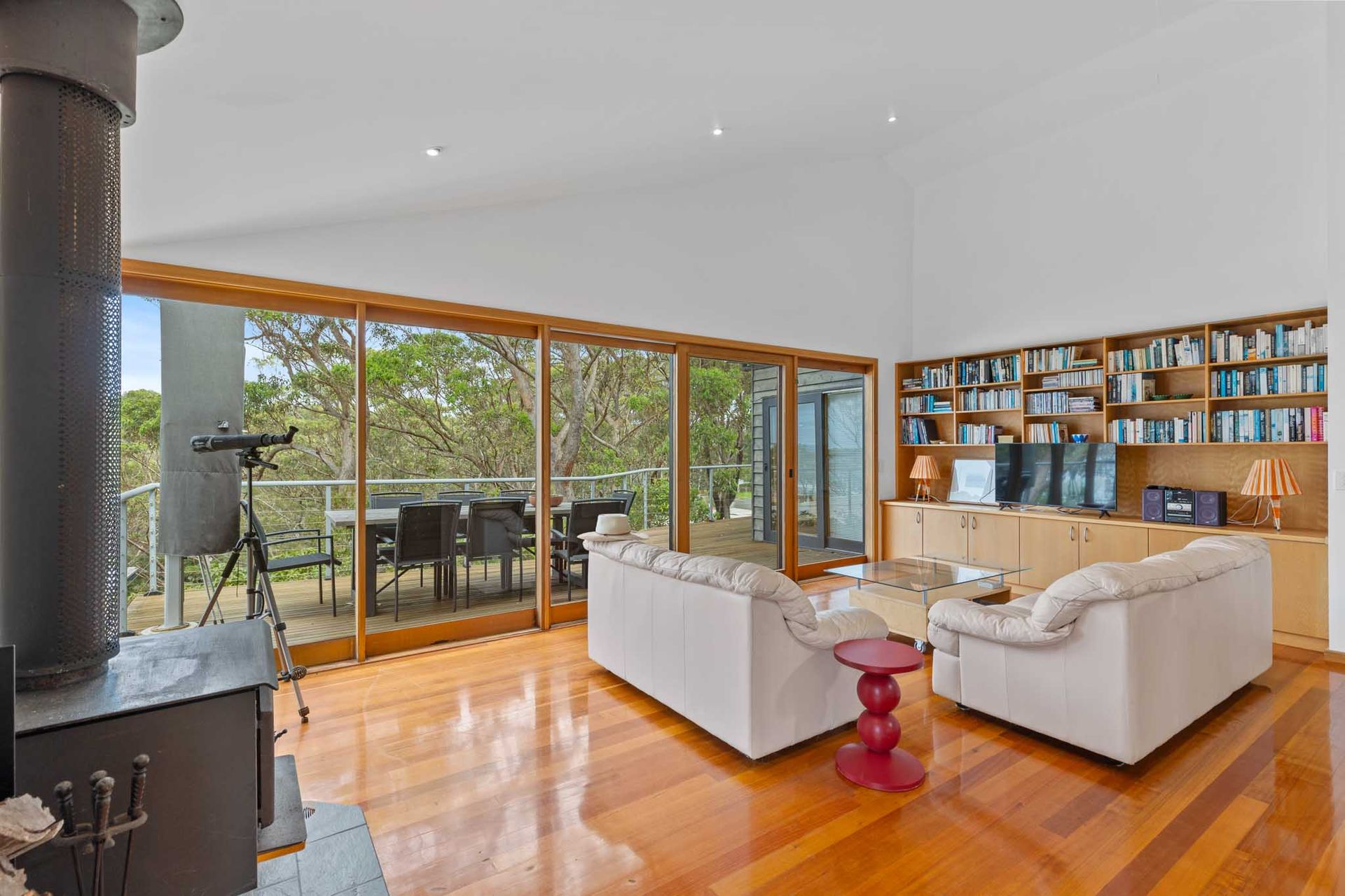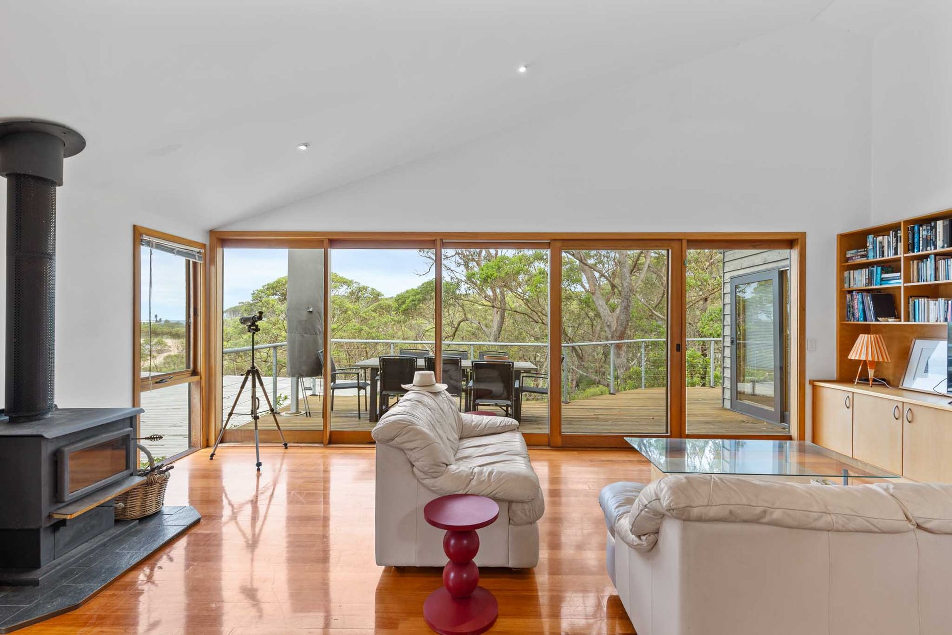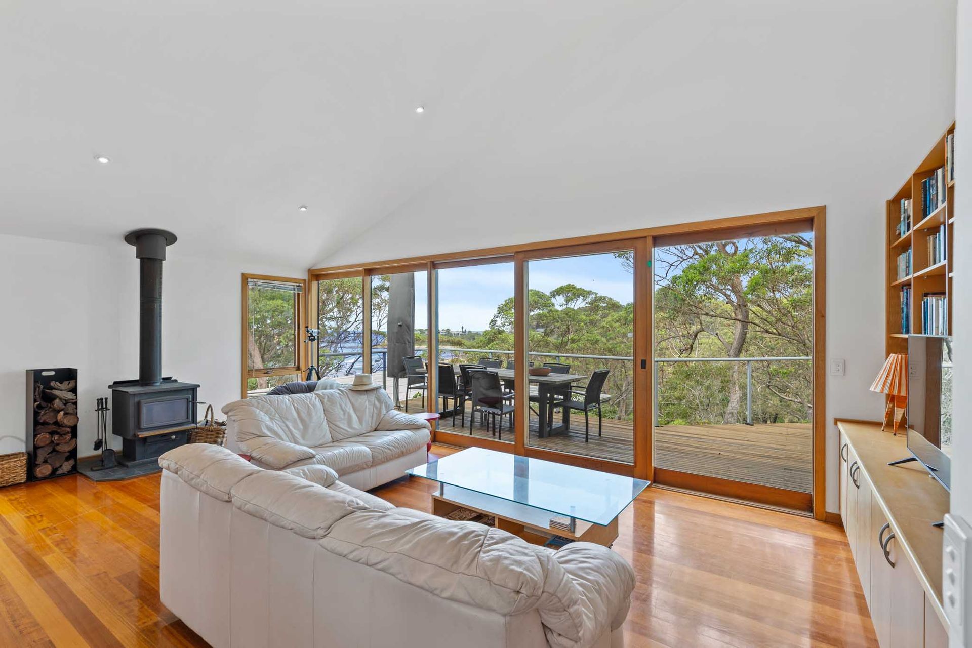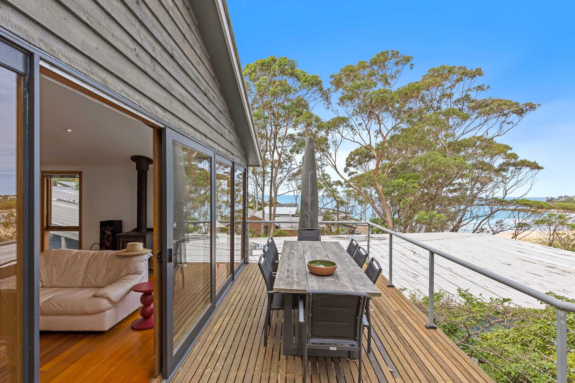 Designed to make the most of its elevated position, the home captures stunning views from the main living area and expansive deck — the true hero of the property.