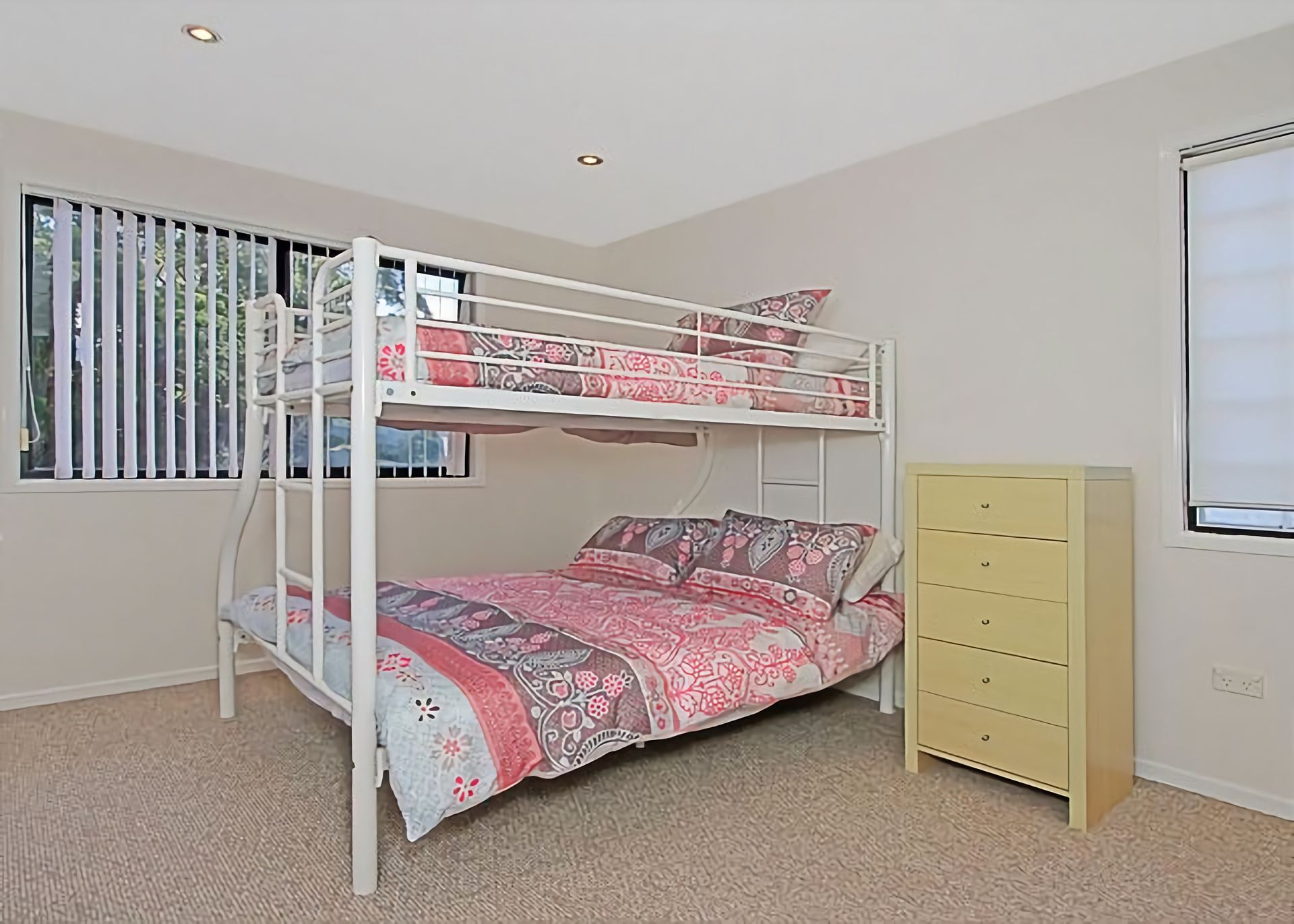 Bedroom Three: upstairs, tri- bunks.