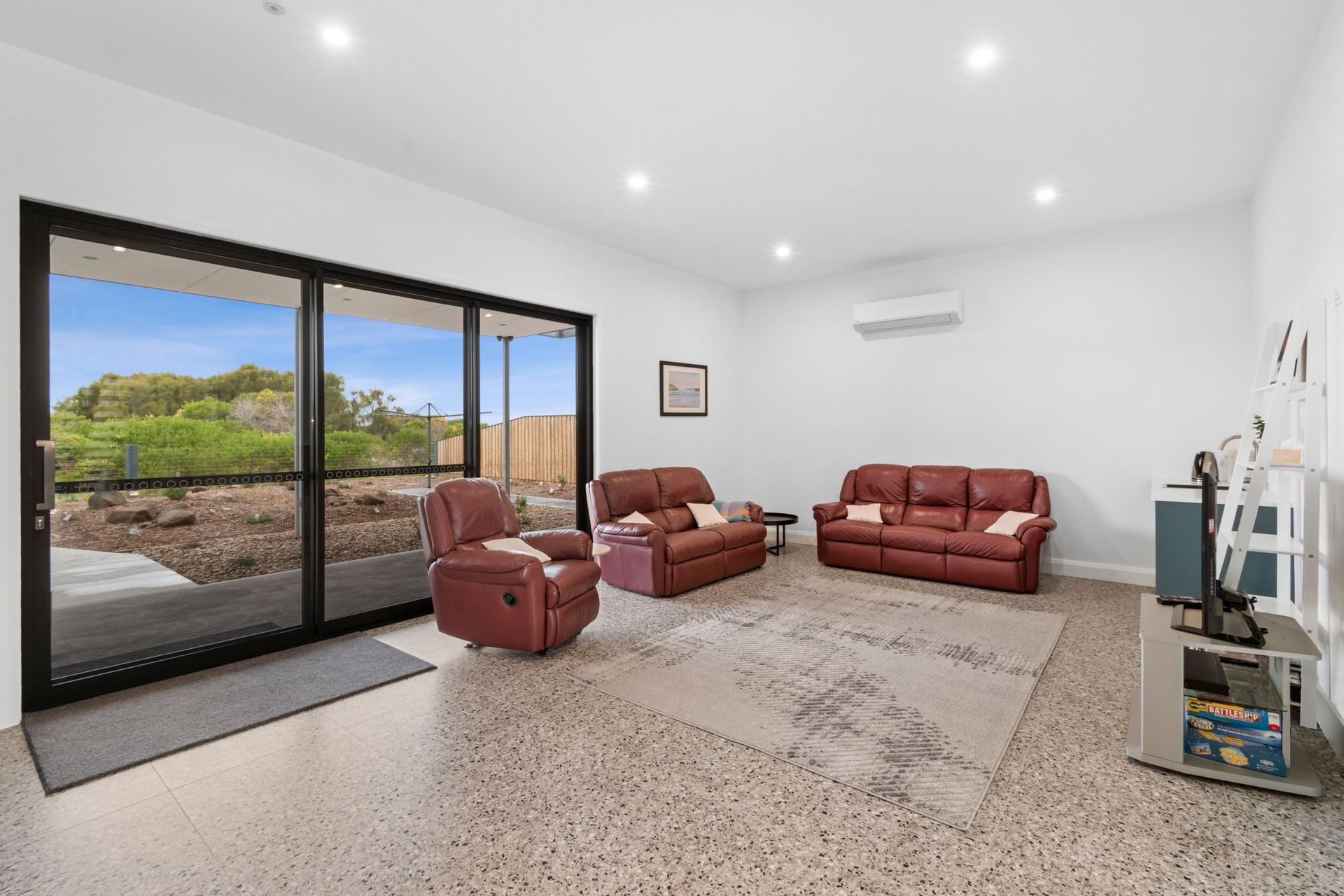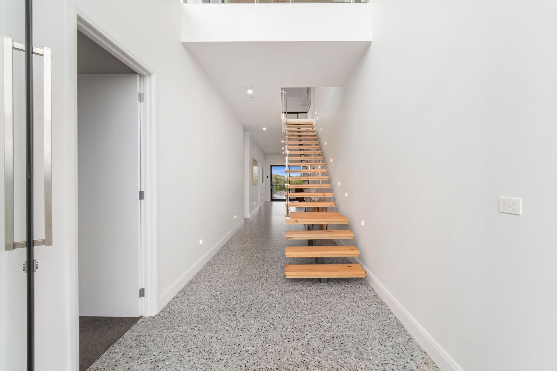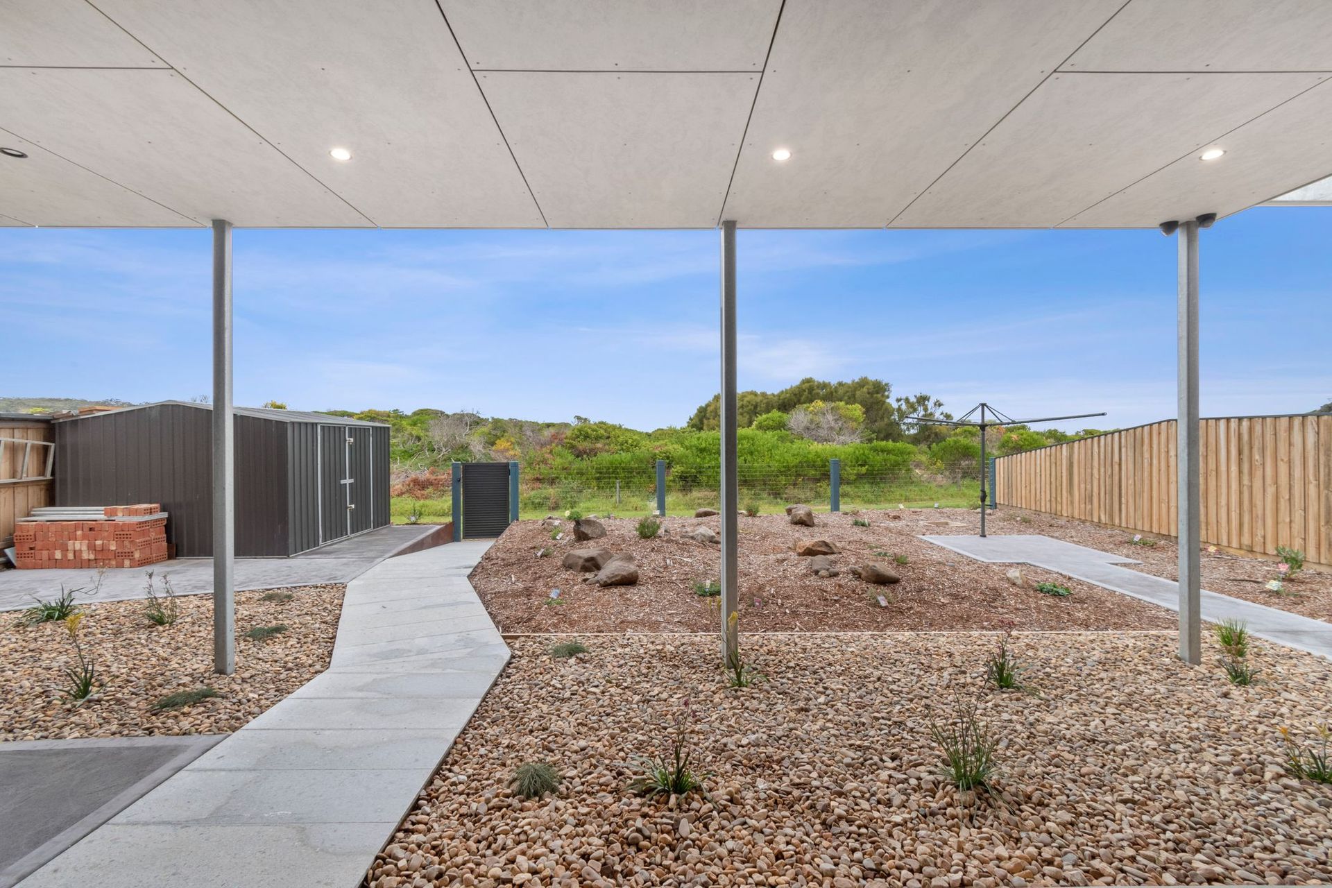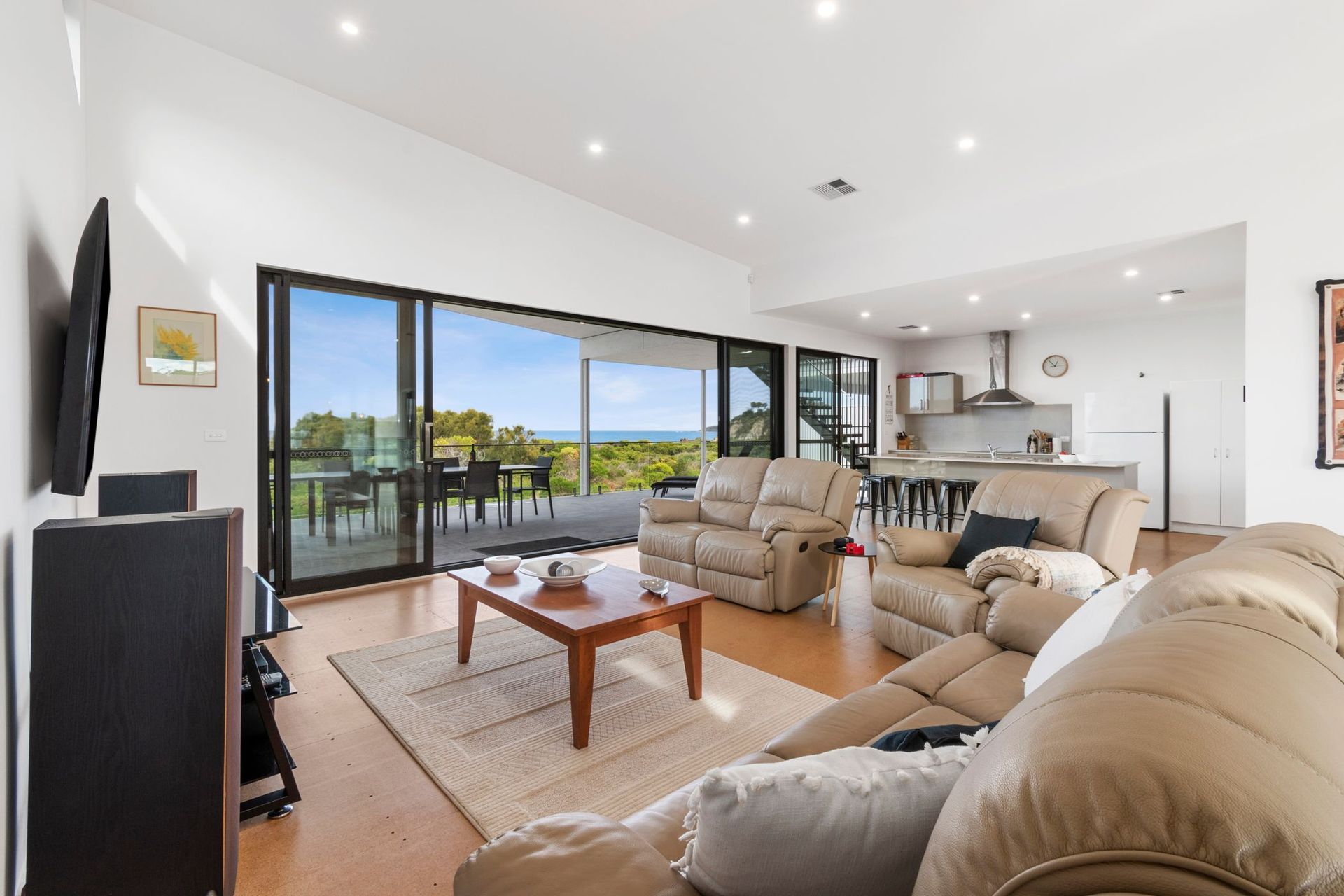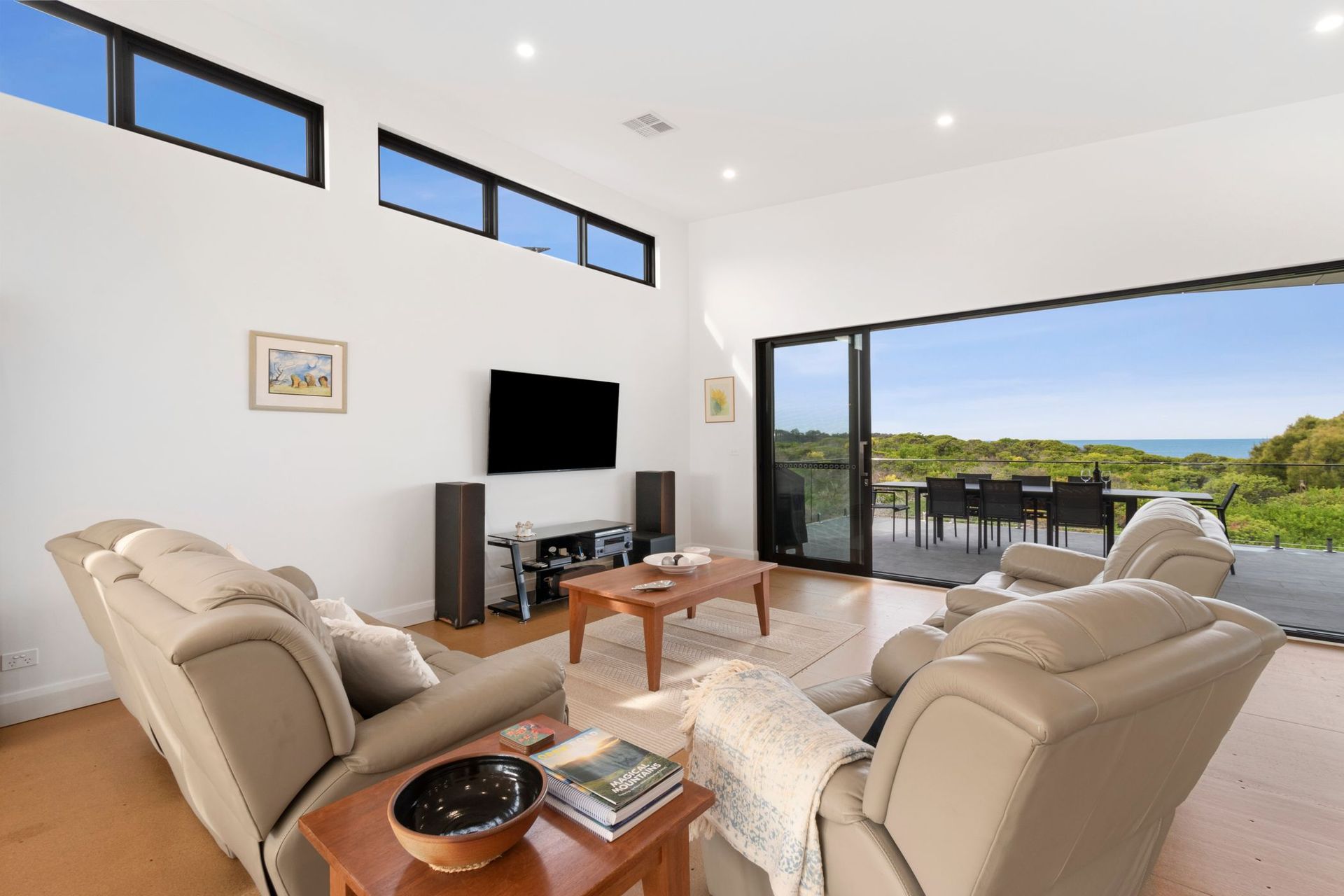 As you step into our beach house, you'll be greeted by a spacious and beautifully designed interior. The entrance boasts soaring ceilings and is bathed in natural light, creating a luxurious and magical atmosphere. The comfortable seating area is ideal for relaxation and there are 3 bedrooms also on this level which leads out into the fully fenced backyard.