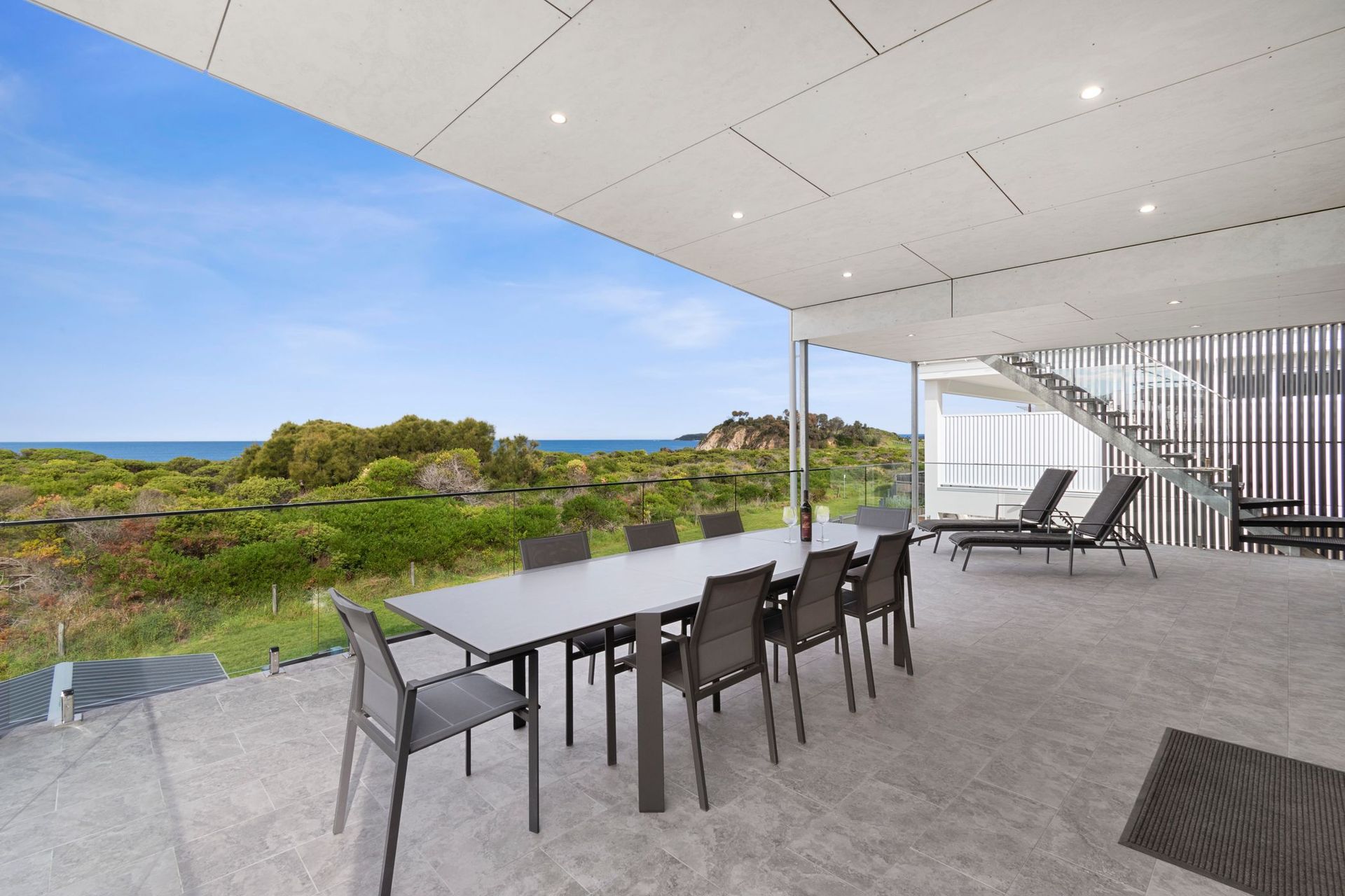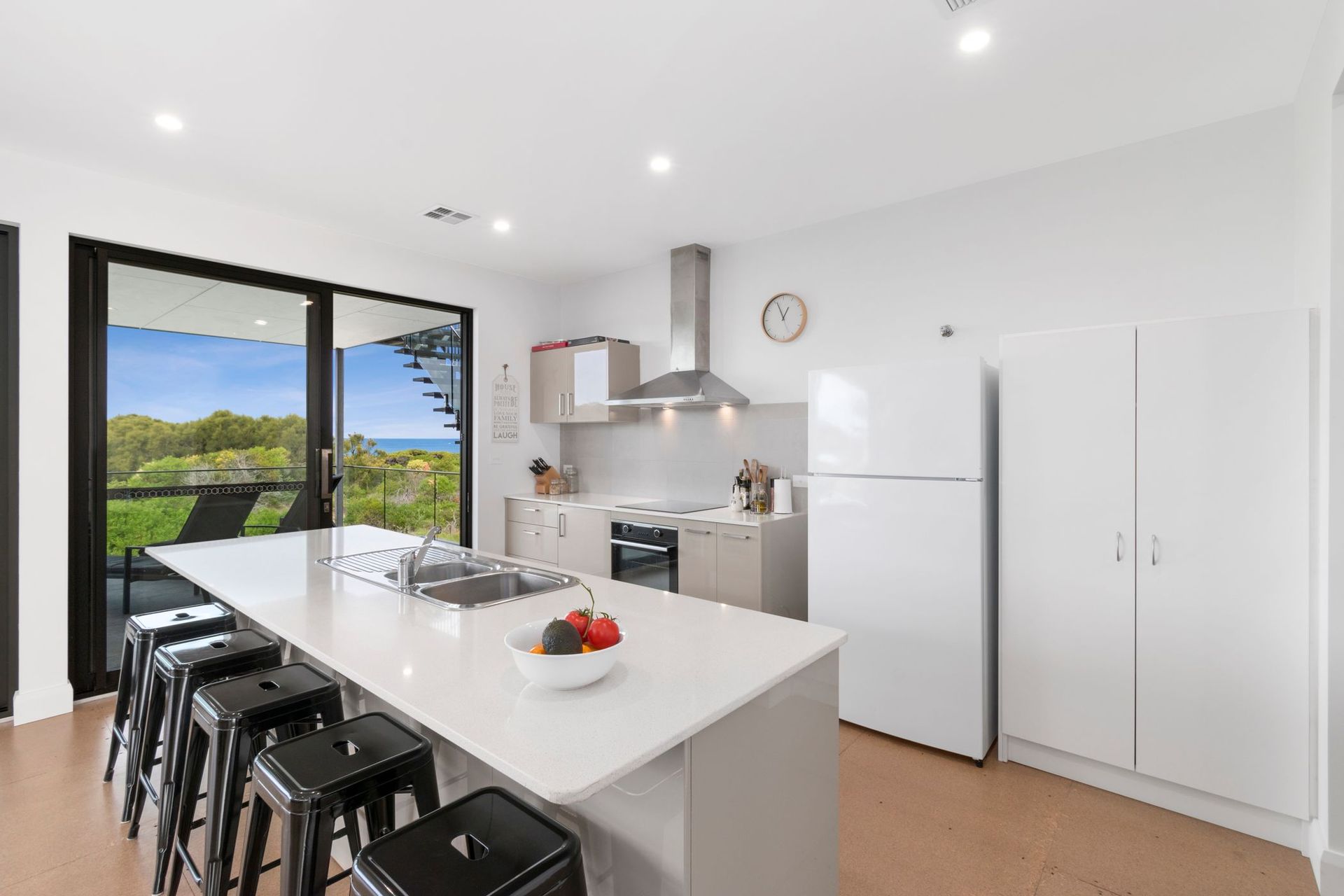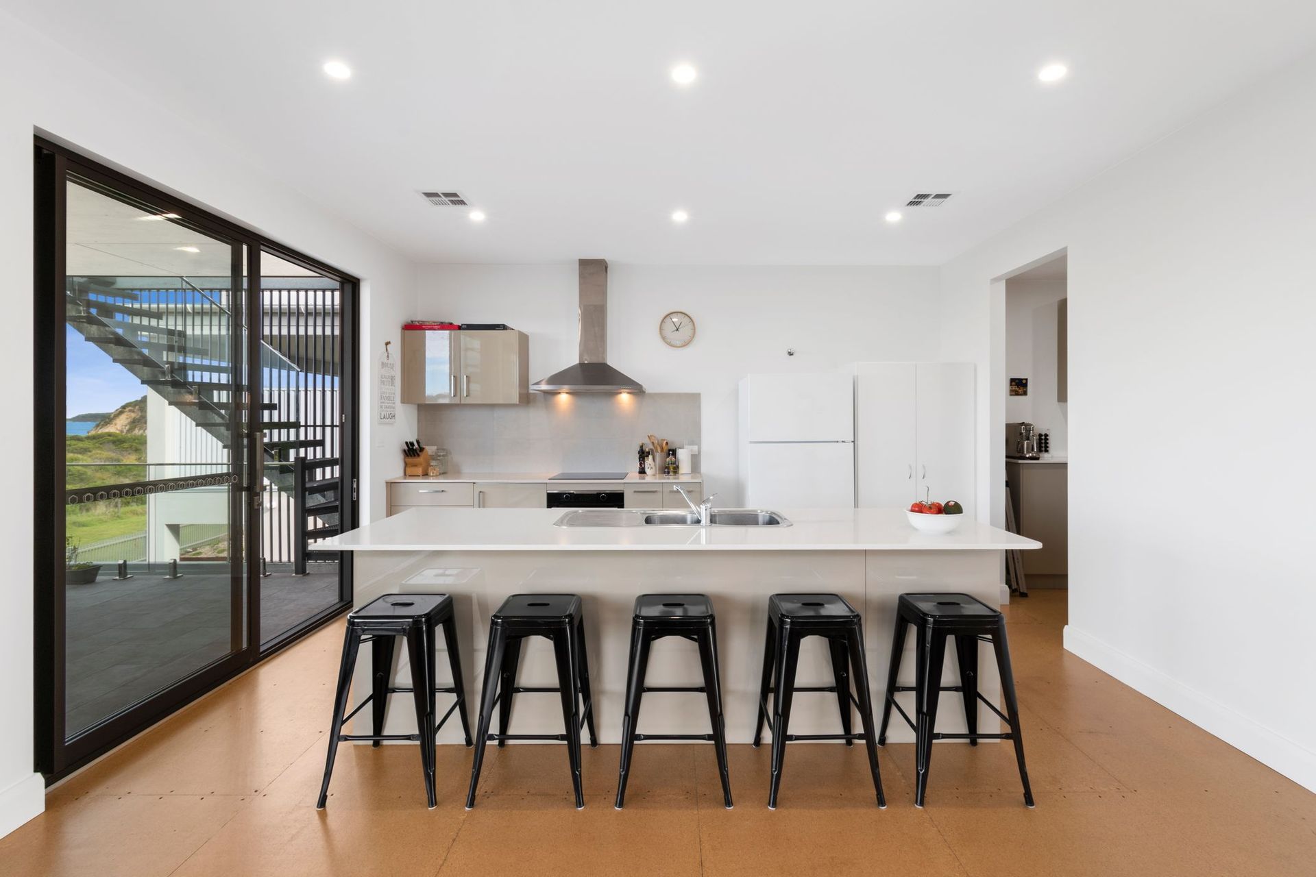 Upstairs the fully equipped kitchen boasts modern appliances and ample counter space, allowing you to prepare delicious meals during your stay. Enjoy your culinary creations at the dining table or the huge deck, where you can savor your feast while enjoying the mesmerizing ocean vistas.