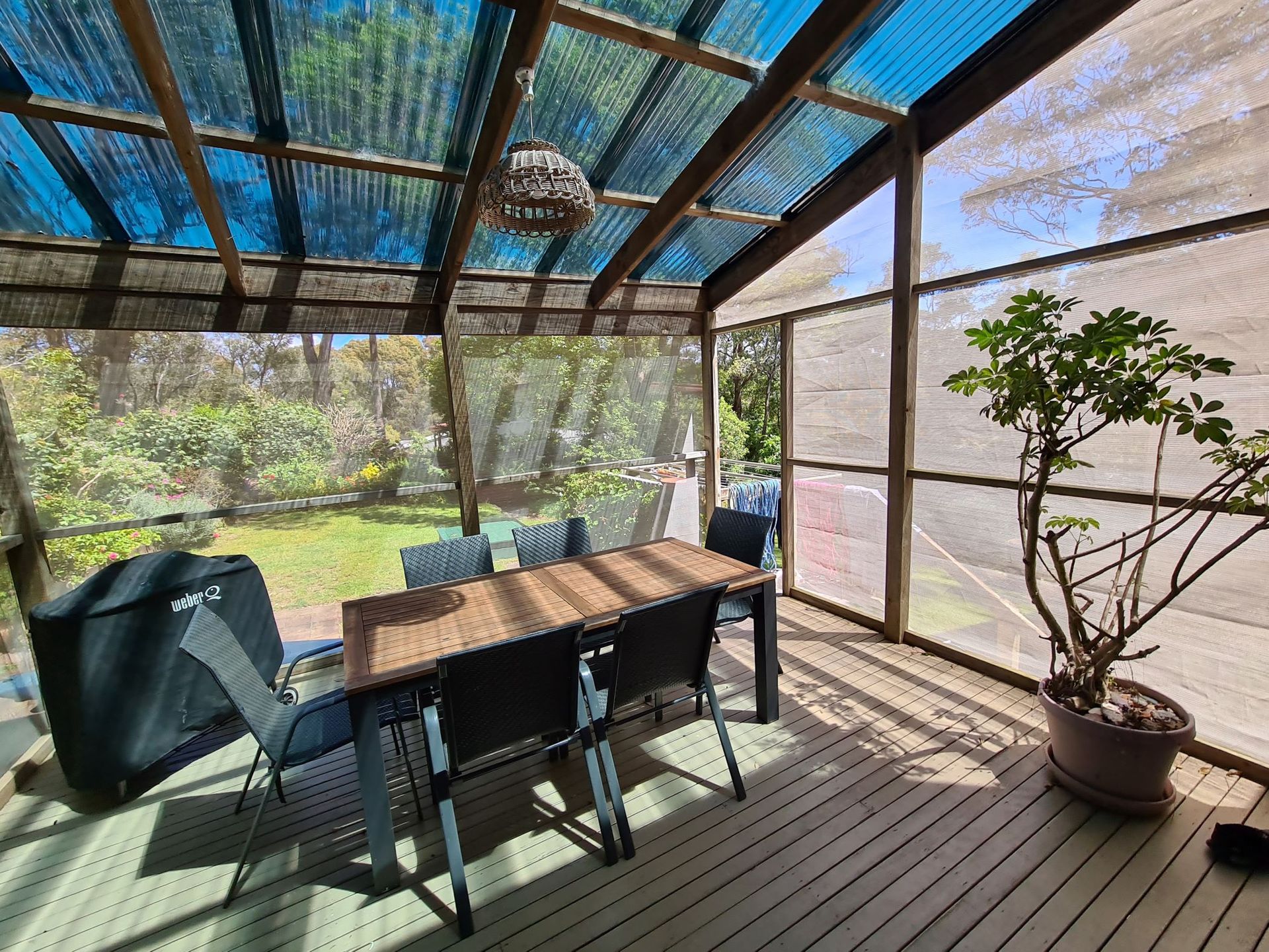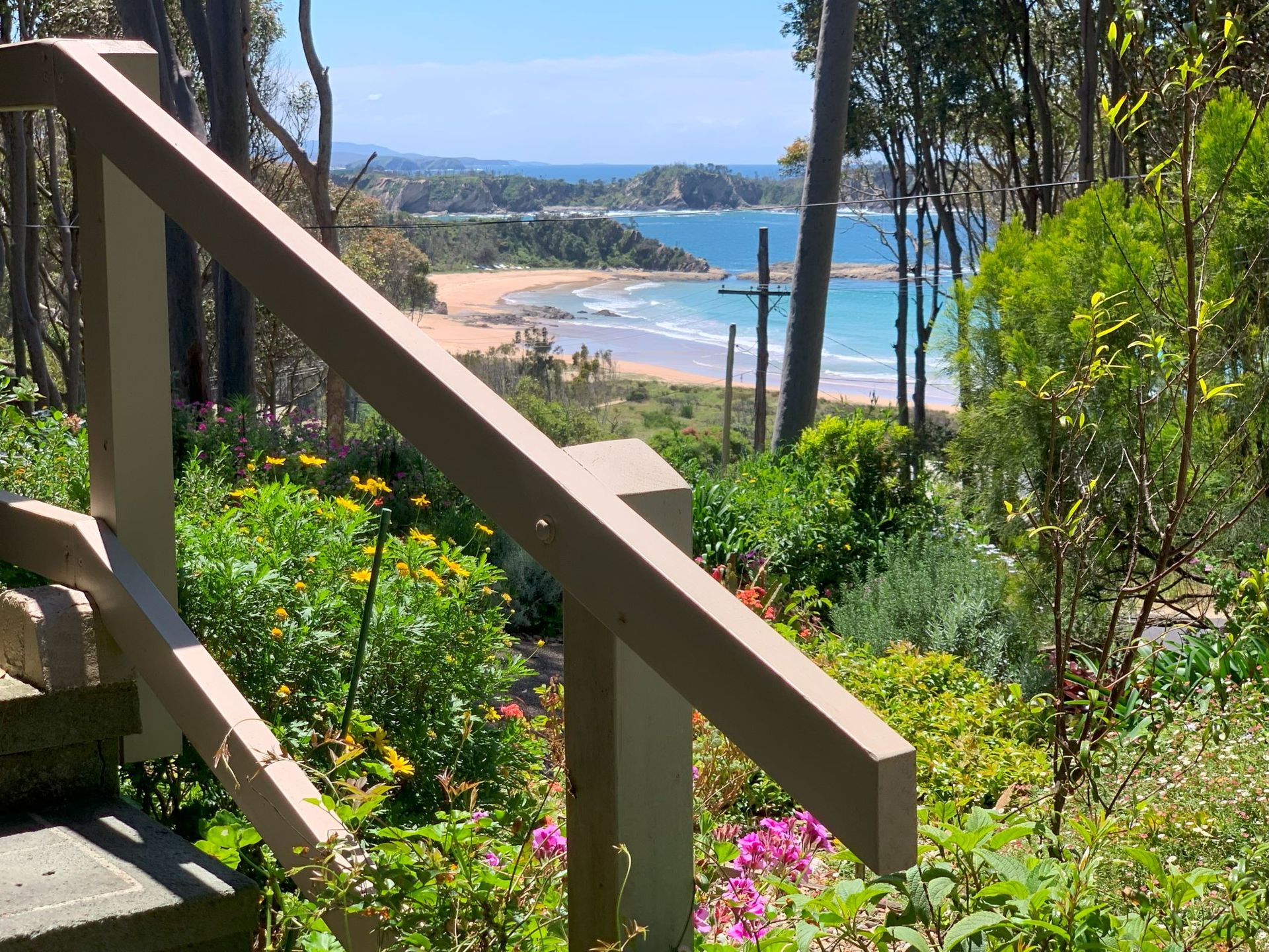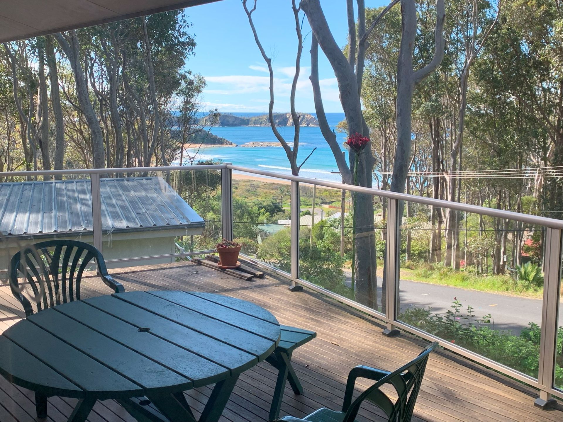 This is a lovely Rosedale cottage with glorious ocean views and lovely gardens nestled in an idyllic bush setting. Perfect for the family beach holiday with a large open plan living and dining with a fully equipped kitchen. Move effortlessly from morning coffee on the front deck with stunning views of the beach to sunset drinks and BBQs on a covered back deck listening bird song in a gorgeous garden. A wood burning fire will keep you snug in winter. You are walking distance to 3 beaches, so just bring your beach towels and you are set. The back yard is fully fenced for the 4 legged family members (please note fencing not suitable for large dogs). There is off-street parking for boats and cars.