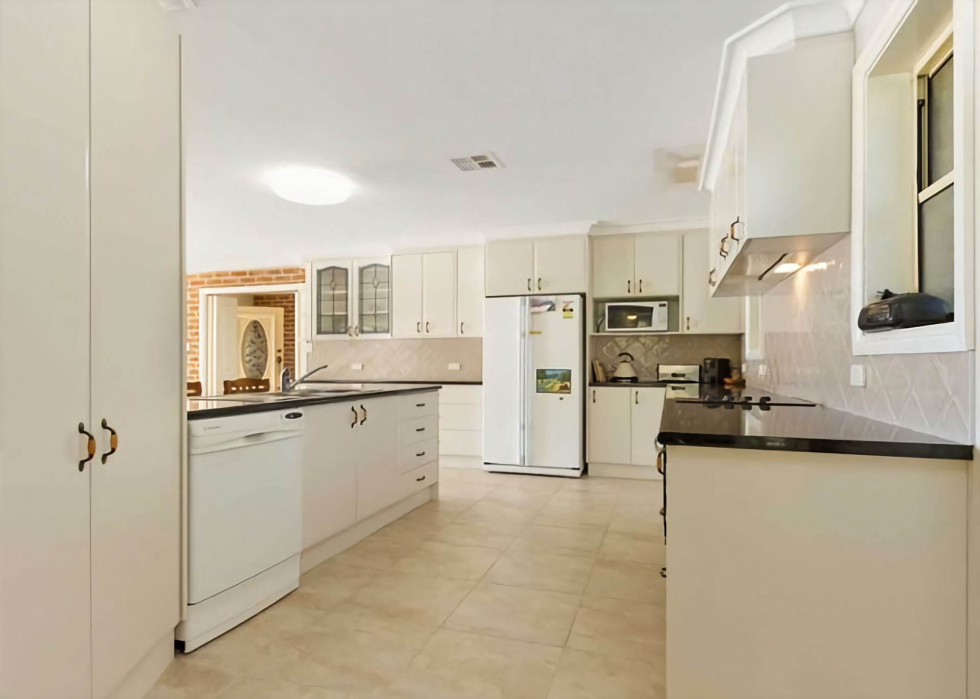 Kitchen: The large gourmet kitchen has everything you need to cook up a storm and includes a coffee machine, dishwasher and microwave to do all the hard work as well as a view of the beach in the distance. Inside a small cabinet in the kitchen is a TV that can be viewed from the kitchen bench for the early risers and cooks. There is a dining table here but to enjoy large family get togethers use the dining room which has a main dining table that is extendable. You might also prefer to sit on the extensive deck and fire up the barbecue and enjoy the view. There is a coffee pod machine and a percolator for filtered coffee.