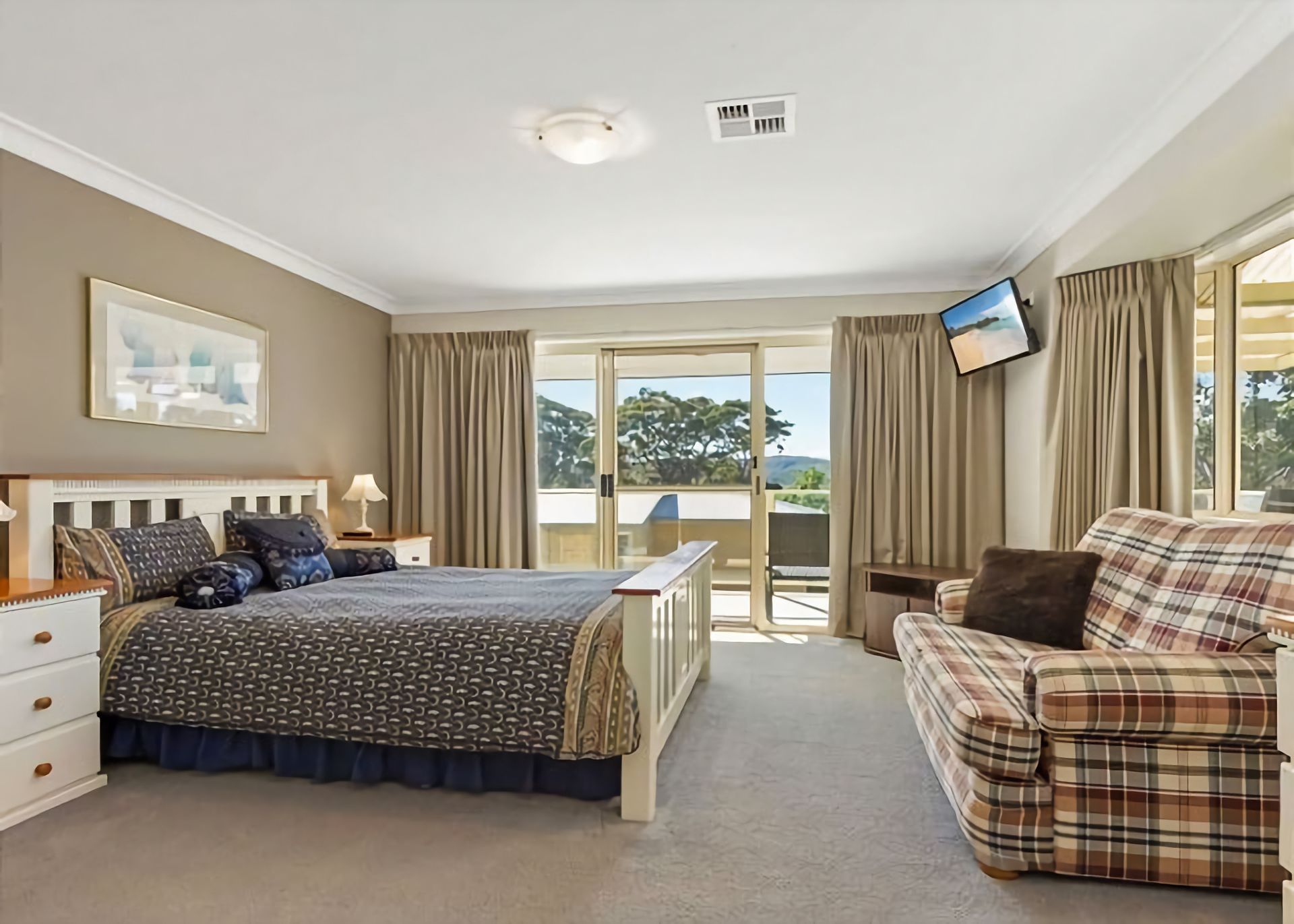 The master bedroom has a king sized bed and TV. An ensuite and a large WIR are also included. You will also find a cot and high chair for your convenience.