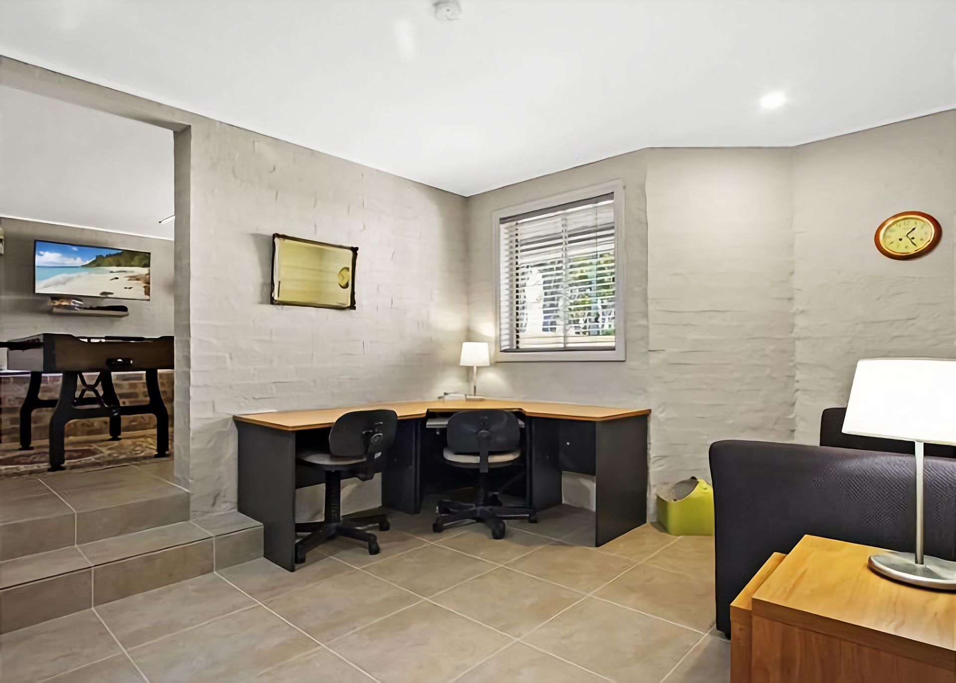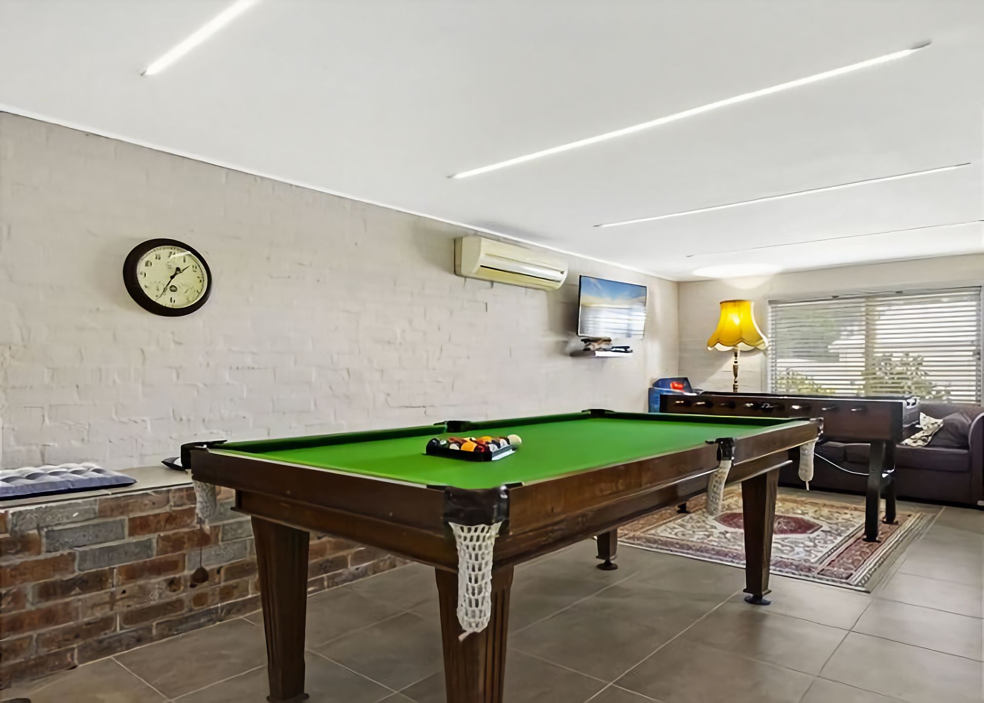Downstairs: Downstairs is a rumpus room with a TV, pool table and lounge area for the kids or young at heart. This area also includes a designated office space for those who need to touch base with the office or who want an area to play computer games on their devices, however, unfortunately no WiFi is available.