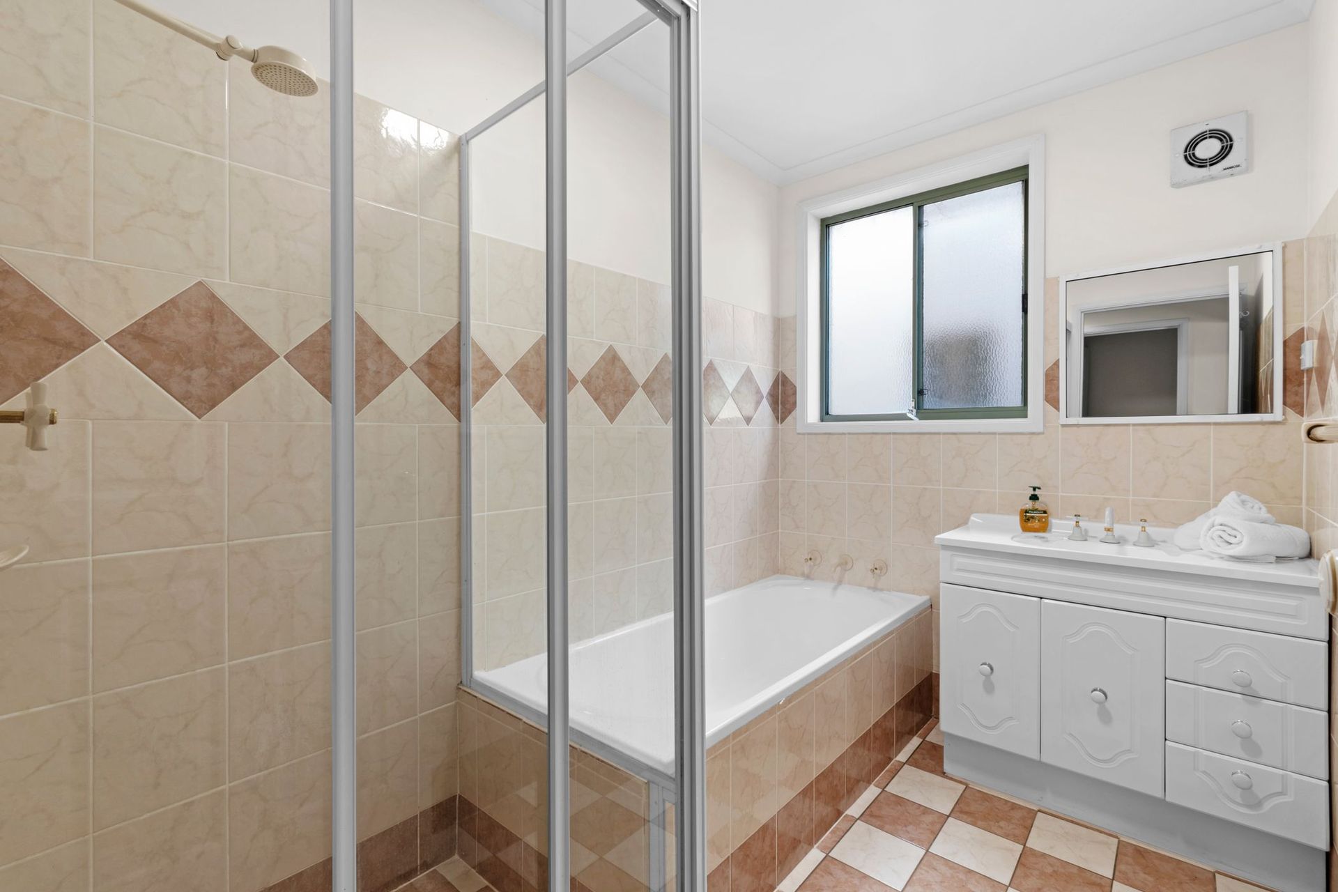 There is a bathroom with bathtub and shower, a laundry with washing machine and exit into the fully fenced back yard.