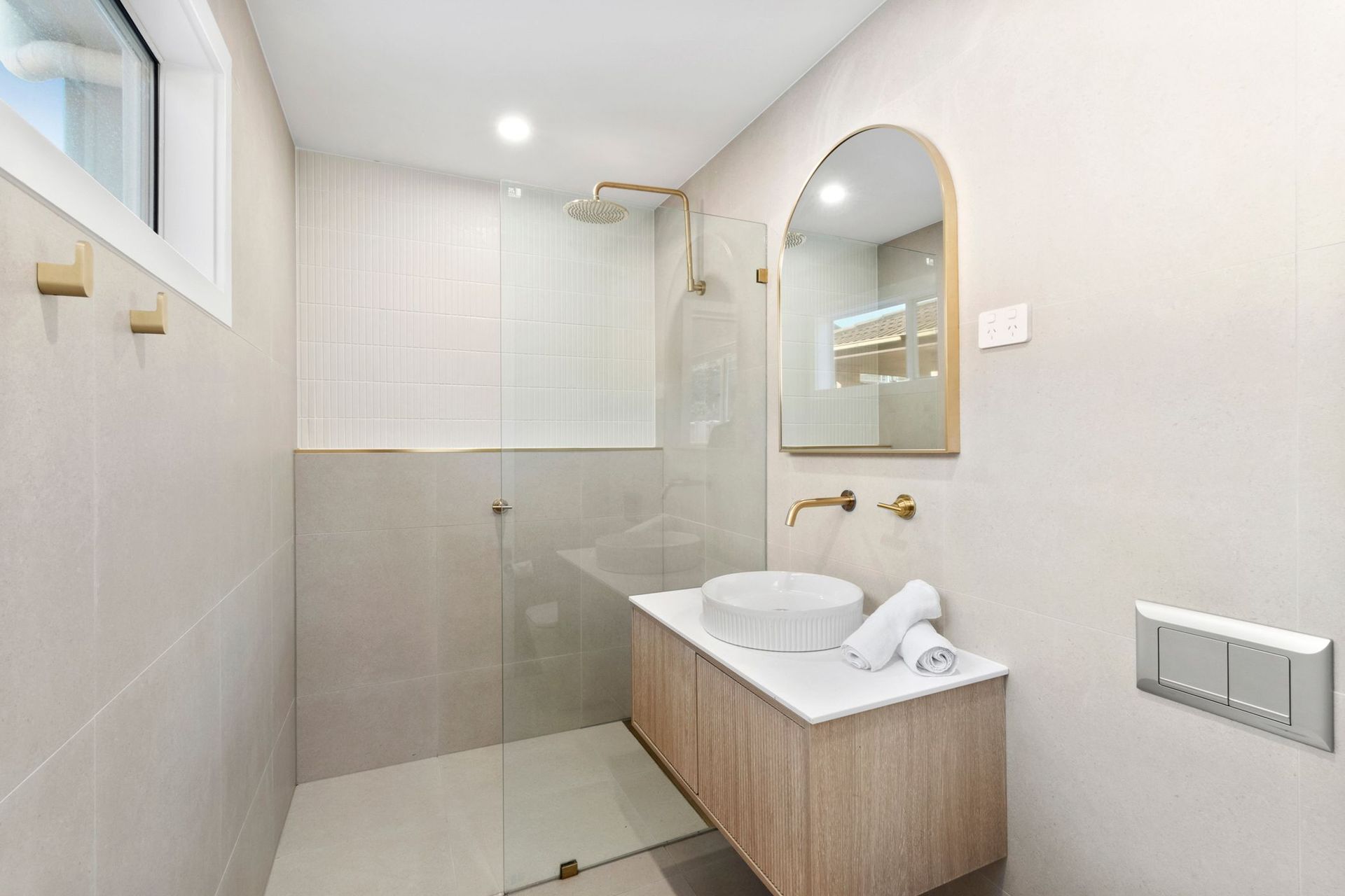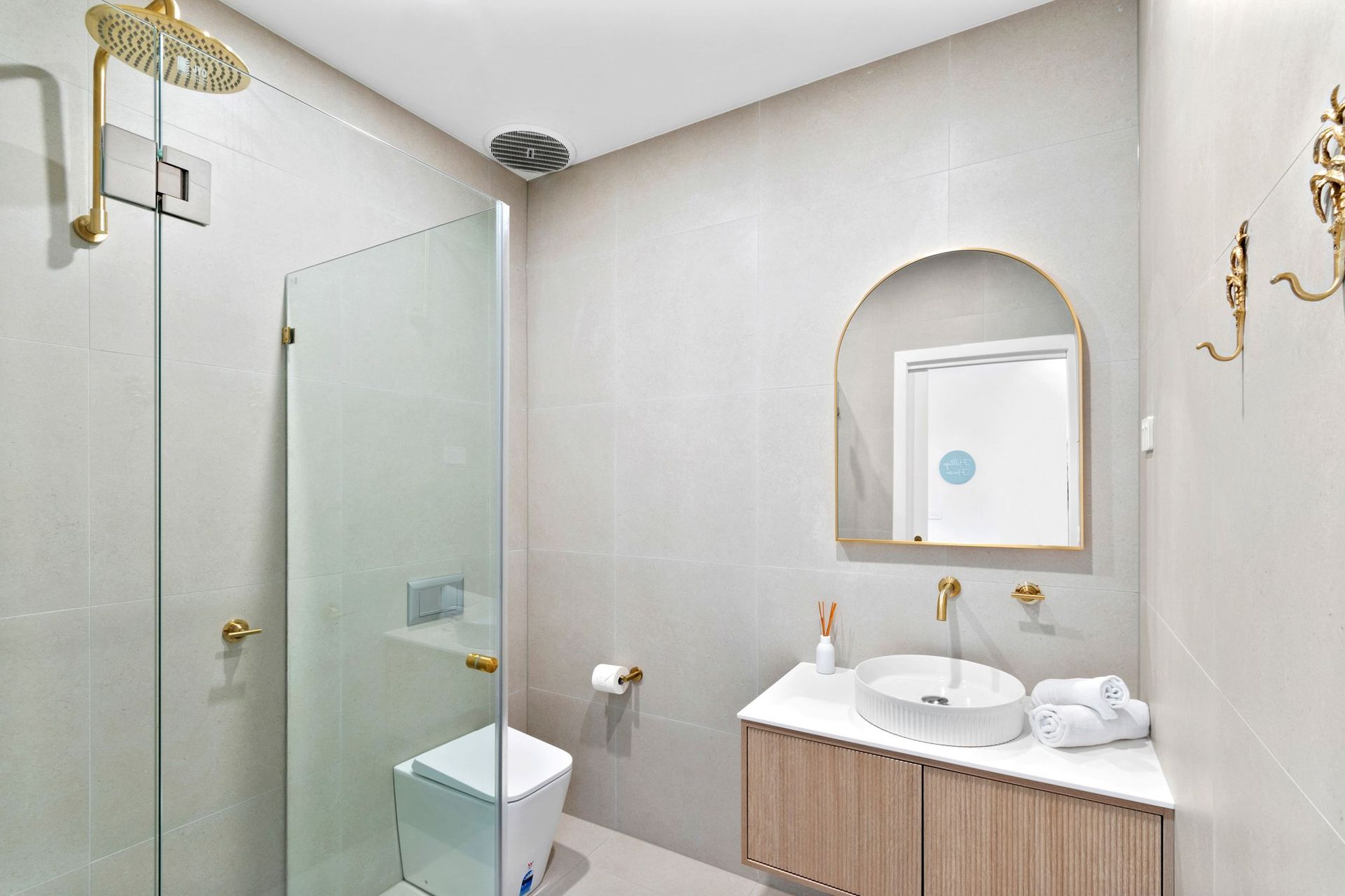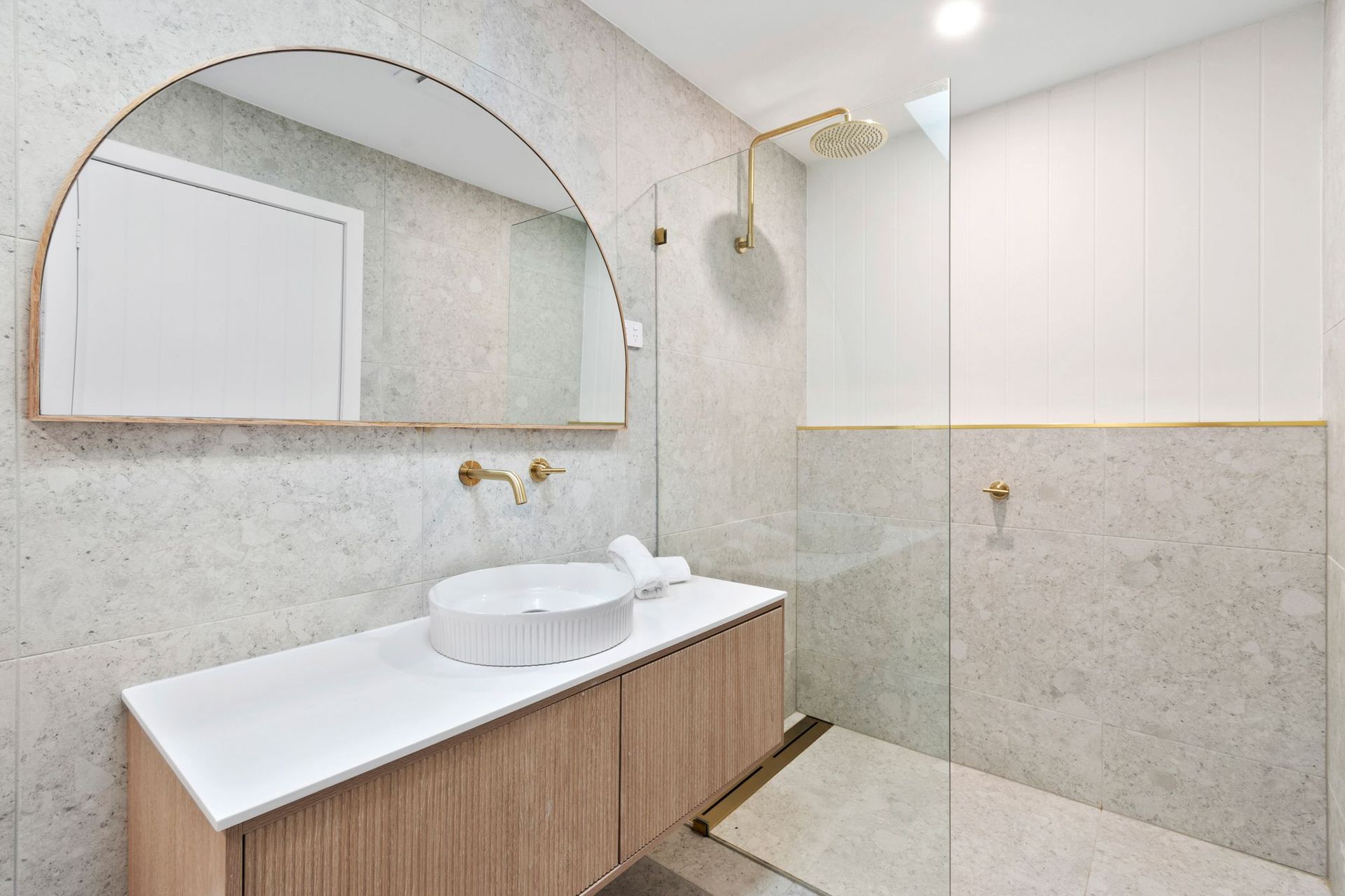 In addition to the master ensuite, the main upstairs bathroom includes a freestanding tub and separate shower—perfect for a relaxing soak after a day at the beach or on the trails. A third bathroom on the ground floor adds extra convenience, especially for larger groups or guests staying in the downstairs bedroom.